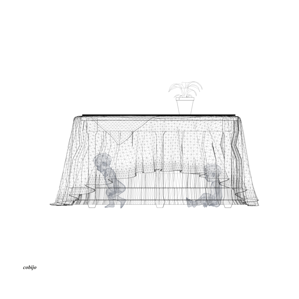 /si hubiese que otorgarle la forma de un elemento cotidiano a una máquina capaz de parar el tiempo, esta sería sin duda la de una mesa camilla. Esta ha pasado de ser el centro de las salas de estar a arquetipo en peligro de extinción. Desde bien pequeño tengo el recuerdo de la mesa de casa de mis abuelos: las incontables partidas de parchís que jugábamos en torno a esta ajenos al paso de las horas, las fotos y estampas que guardaba mi abuela bajo el cristal redondo que protegía el tapete de ganchillo, o las comidas familiares que se daban gracias a la posibilidad de extenderse para acoger a toda la familia. No obstante, no solo tengo recuerdos por lo que sucedía sobre su superficie superior. Bajo las sallas que la envolvían encontraba un lugar perfecto para esconderme y jugar al cobijo de la estructura de madera cubierta por esas pesadas y gruesas telas. Una cabaña improvisada que ofrecía protección/