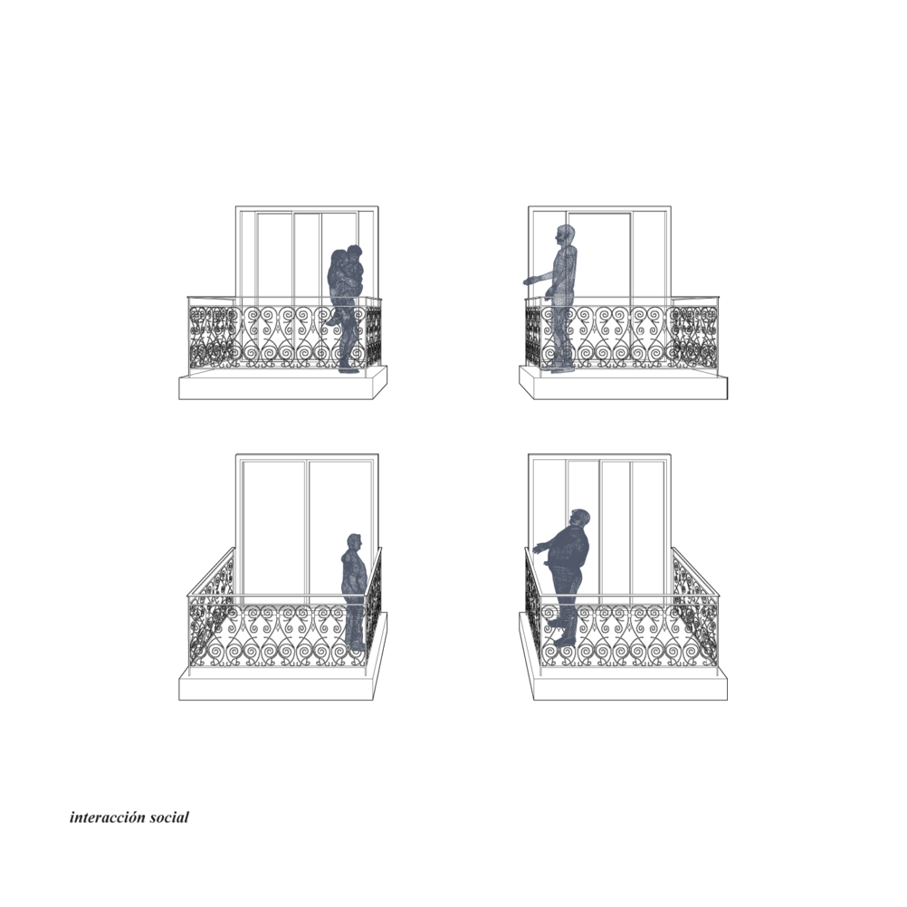 /el balcón puede ser considerado el paradigma de la interacción social dentro de los elementos que componen un edificio. Desde sus orígenes, su función ha sido la de ofrecer un espacio de relación con el entorno inmediato, un elemento de comunicación. Asimismo, este permite la relación de dos —o más— personas que se hallan en sendas viviendas, como es el caso de las dos personas mayores, hermanos, que viven frente a mi casa. Desde su posición en altura mantienen largas y tendidas conversaciones, a la par que controlan todo cuanto sucede en el barrio.