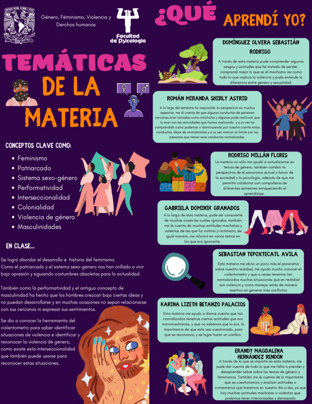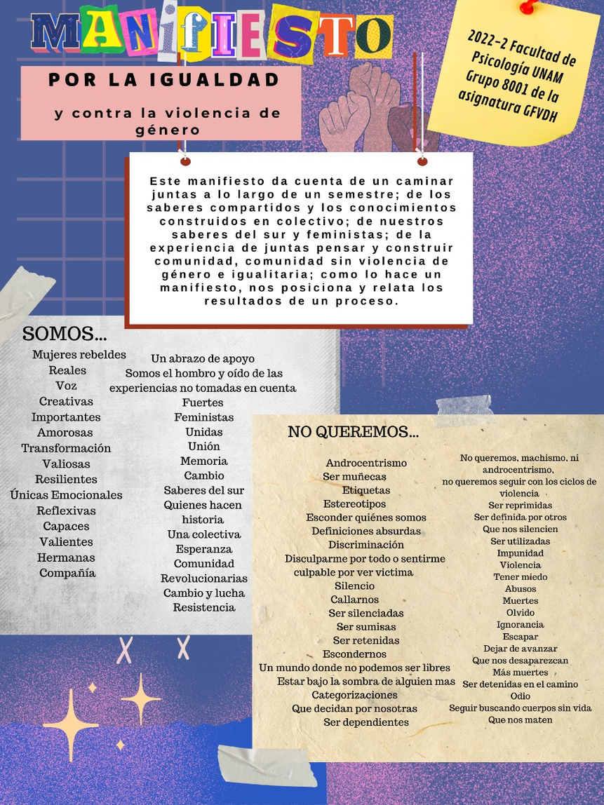 Exposición sobre las producciones, encuentros y experiencias académicas, políticas y pedagógicas de estudiantas y académicas de la Facultad de Psicología de la UNAM. 2022
