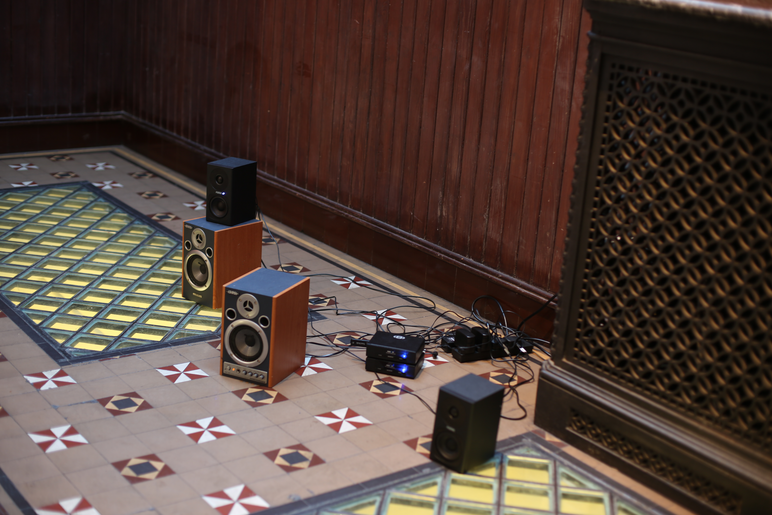 As I worked in the space and on edits, I had in mind affective atmospheres, bodily response and the occurrence of event, so that by following my own affect heuristic, I could notice when things ‘occurred’, and how the space shifted with different positionings and combinations of elements. I understood from previous works that I needed to make the stuff active - multifaceted groupings of gathered microelements from the other place/space, put together in relation with others, but with gaps, shifts and space to invite promiscuity with the space I was constructing into, its shape and audio ecology.