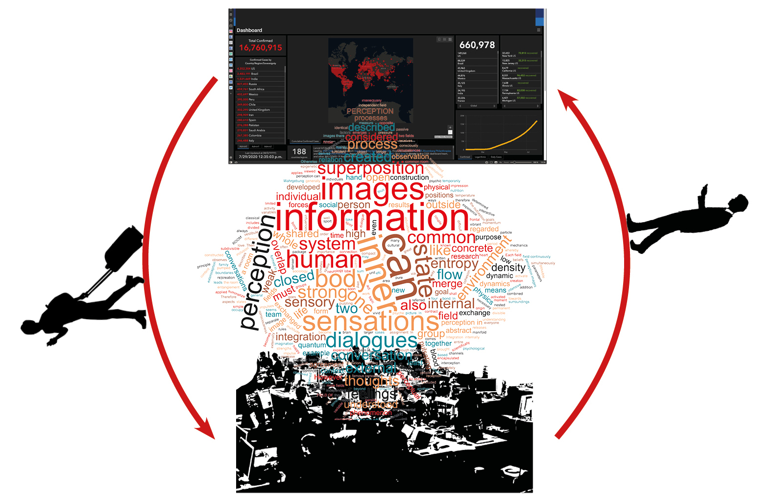 The lockdown in 2020 made also visible how fast the inner flow of images and dialogues can be connected with many people not only on a mental level but also on an emotional level. This thesis argues that the intensive cooperation of many people is comparable with the moment a brain processes many impulses from the human sensory system and a decision, an idea or a vision comes alive.