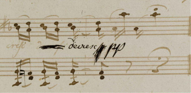 which contains correct readings of the first fermata (sustained, expectant), and misread the opposite swells of the second one.