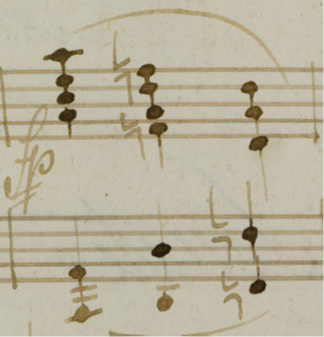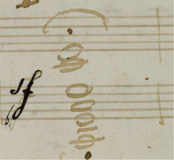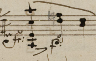 Very much like Beethoven changes the swell and carries it out in the first adagio into the second bar (with the C), Kavakos lingers on the F to extract from it a very expressive power. Like the manuscript (and Henle, depending on the reading), Pace creates a small silence between the F and the B flat chord by lifting the pedal.