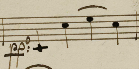 In the second fermata, the diminuendo starts right away, since a crescendo precedes this forte, the summit of this curve doesn’t need a further reinforcement in this very suave section of the quartet. This will help us understand the fermatas that follow quick runs, and how to deal with their preparation.