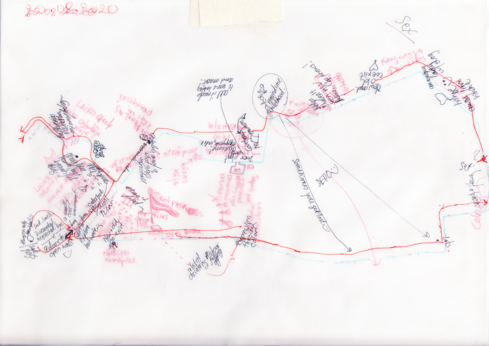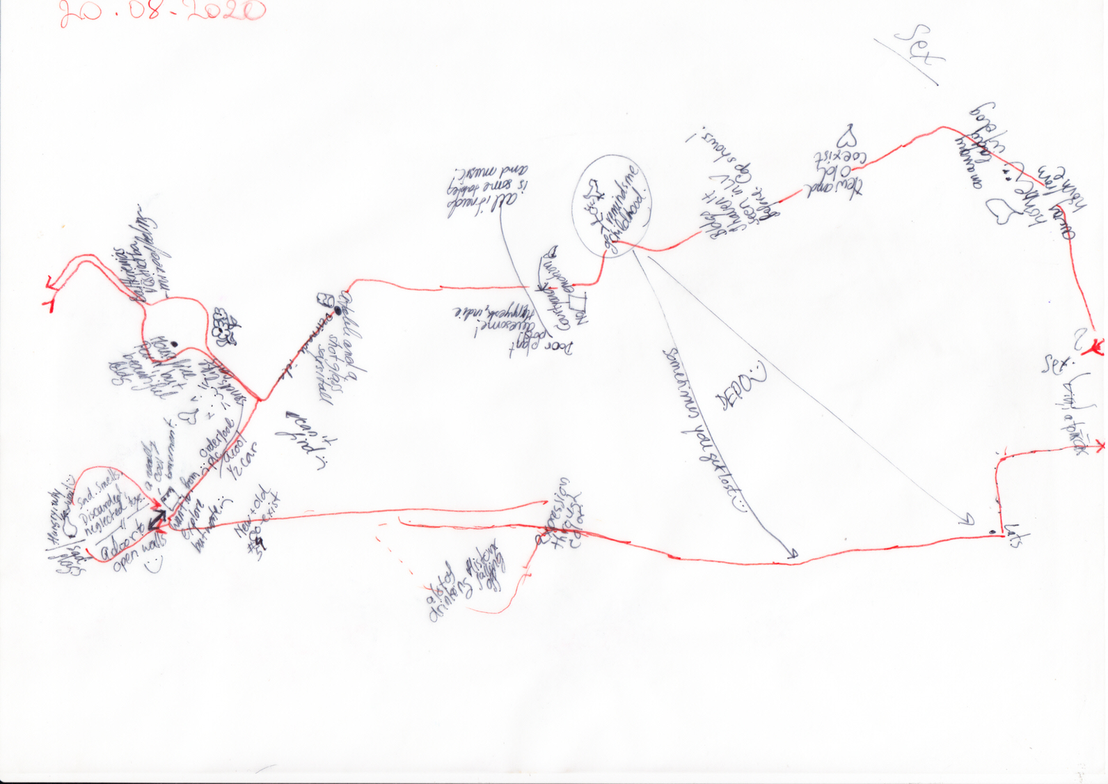 This page offers a research diary on the project HALL12 - Encounter Activism, initiated by Breg Horemans and Gert-Jan Stam (founders of TAAT) in collaboration with Liga Zepa, Ieva Dzindza, Menzo Kircz, Israel López, Efrosini Tsiritaki and Jenny Case. The project is based on minimum 20 silent walks, staged as 20 encounters, between people that have never met before. The walks are taking place in Athens, Brussels, Dundee, Amsterdam and Riga between June and December 2020. This page gathers images, texts, theoretical reading, sketches and audience feedback on all the encounters. It's a research environment to share experiences within our team and to continue building on the iterative discourse on our practice from HALL11 onwards.