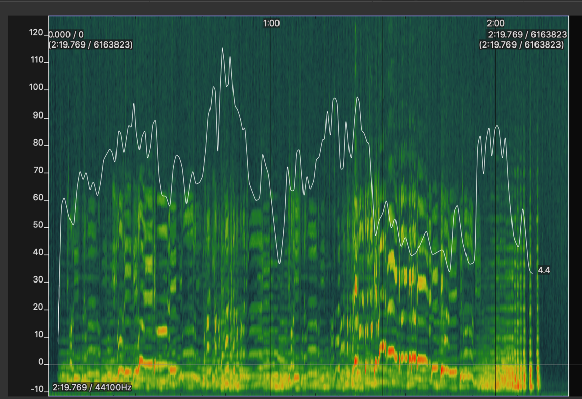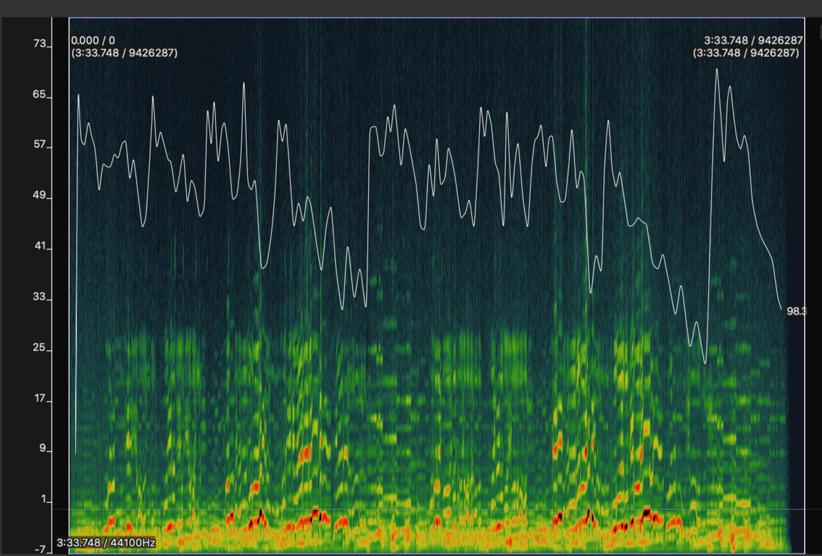 Figure 4.5 Spectrogram of Franz Schubert’s An die Musik (Lehmann, 1927) tempo (bpm) based on duration since previous beat.