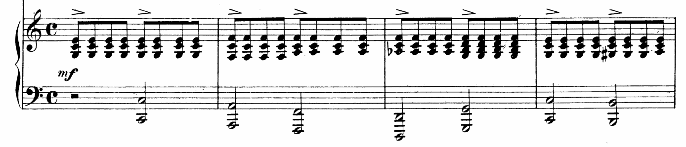 Although the whole piano accompaniment of Ich grolle nicht shows steady rhythmic patterns (Figure 4.13), Lehmann sings Ich grolle nicht with unpredictable flexibility of rhythm and tempo (Figure 4.12).