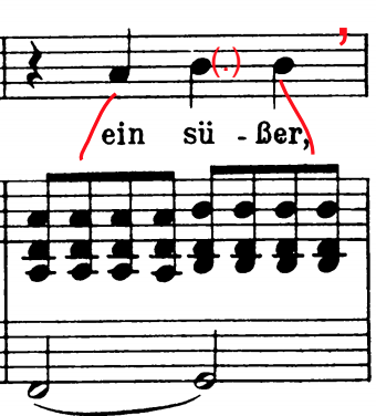 An die Musik consist of two strophes which poem was written by Franz von Schober. In general Lehmann breathe where there is a comma (,) in the text, but there are some other places in the middle of the phrase where she breathe to convey the meaning of the following lyrics. Below are the breath marks that illustrate Lehmann’s 1927 recording: