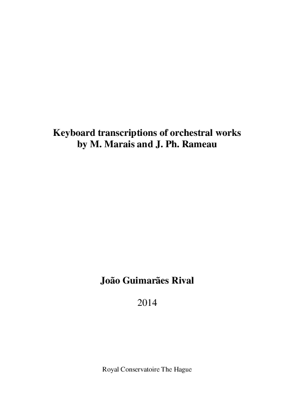Name: João Guimarães Rival Main Subject: Harpsichord Research Coaches: Inês de Avena Braga and Patrick Ayrton Title of Research: Keyboard transcriptions of orchestral works by M. Marais and J. Ph. Rameau Research Questions: How did French Baroque composers adapt orchestral works for the harpsichord? What needs to be observed when making new transcriptions based on historical examples? Research Process: Often, as a harpsichordist, one needs to transcribe or adapt an orchestral piece for keyboard, either when accompanying or even if only to understand it more deeply for continuo playing. The motivations of playing orchestral excerpts that were not yet transcribed, or which are currently known nowadays is perhaps the main point of my research. It relies on the analysis of the examples of transcriptions realized by Jean-Henri D’Anglebert (1629- 1691) from several works by Jean-Baptiste Lully (1632-1687), the 1693 Anonymous transcriptions from Alcide by Marin Marais (1656-1728), and Jean-Philippe Rameau’s (1683-1764) Les Indes Galantes (1735). In order to apply the results of these analyses, I transcribed a few instrumental excerpts from the operas Sémélé (1709) and Les Boréades (1764) by Marais and Rameau respectively, and will present a report on how the transcriptional process was made. Summary of Results: I believe that the results of my research have opened up new perspectives in this field, and provided new historically informed transcriptions for solo performance. With the examples analyzed, the present study detailed important aspects of the transcriptional process and unraveled many of its issues, concerning compositional techniques involved on translating an orchestral piece to harpsichord in two different periods of French music. As mentioned above, it is extremely important for a harpsichordist to identify which tools were used to idiomatically translate an orchestral writing to a keyboard one, if only for a better understanding compositional practices, the solo repertoire and for the development of a more historically informed accompaniment. My research aimed to identify more clearly what could be considered a “French harpsichord language”, considering its sound qualities and different possibilities of interpretation, and how it was used in two major periods of French music, symbolized in this context by Marais and Rameau, and their impact on the musical life of nearly a century. The presentation will be focused on the process of transcription with live music examples enhanced by a PowerPoint presentation.