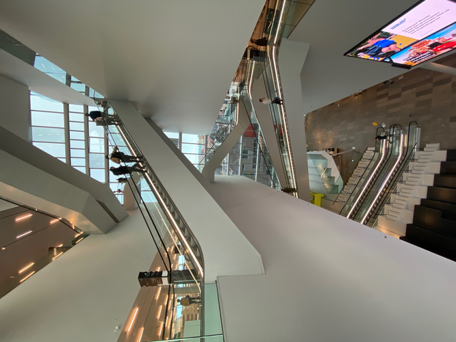 The programme is reinterpreted as a hilly feature in the landscape hosting the required functions inside its shell. The timber new landscape is planted as a continuation of the existing landscape and can be accessed form a cave like openings.