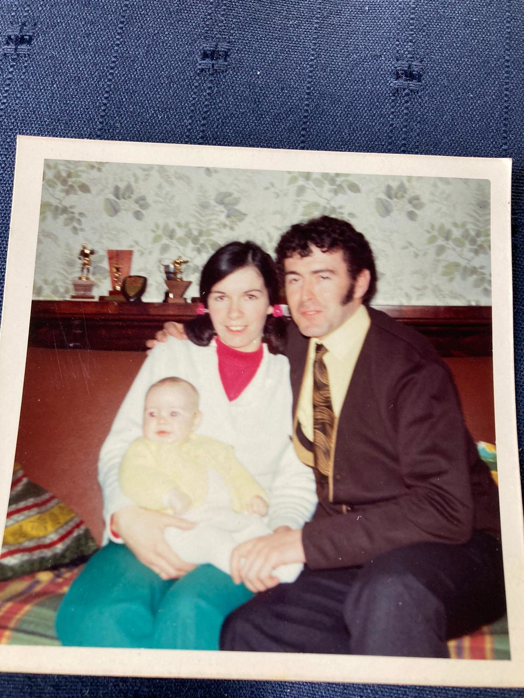 This photo of my mum, dad and I was taken in Spring of 1972, in my grand-parent’s house in Draperstown, Co. Derry, Northern Ireland. I was 5/6mts old. We had recently moved from Derry city, where my parents had lived and worked as nurses in the Altnagelvin Hospital.