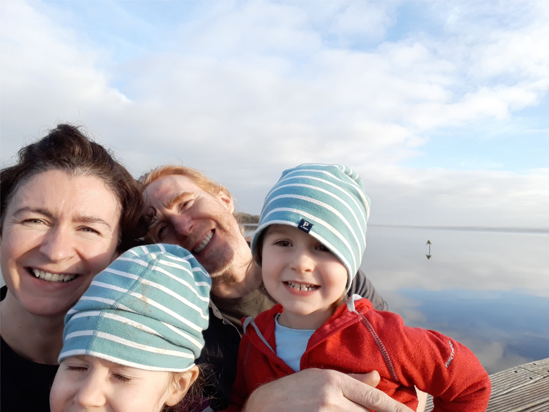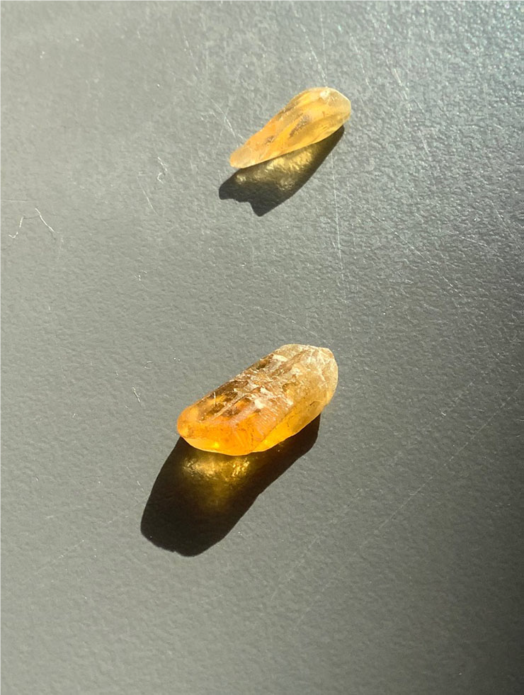 Cranfield holy well stones. These two small amber gypsum crystals have been in my purse for 25 years – originally there were four but I ate two. Family photo taken on Cranfield pier Dec. 18.