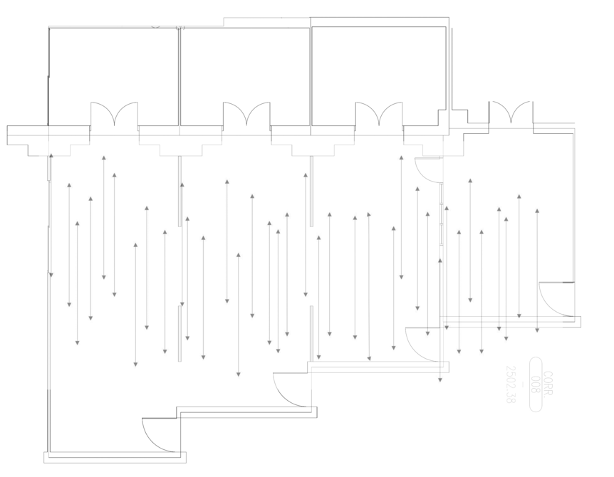 Within museum design, corridors are also important in promoting encounters between artwork and audiences. Think of the long Vasari corridor in the Uffizi, or, outside of Boston, the staircase corridor of the deCordova Sculpture Park and Museum. What type of corridor does the Lamont Gallery have that promotes this space of encounter? What is its propulsive force, if any?