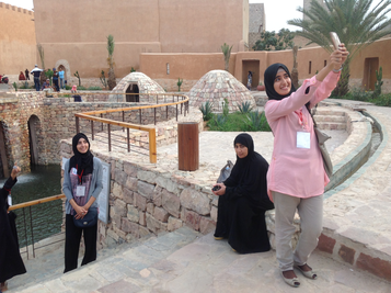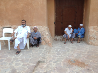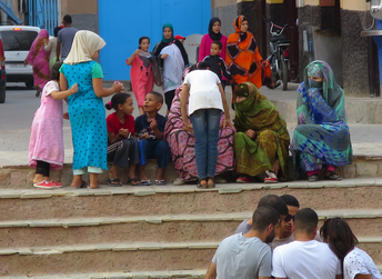The space is welcoming for all ages: young mothers, elderly people, children and teenagers. Women, more numerous than men, sit on the steps, wrapped in their mellafahs, colorful Saharan outfits that catch the eye in counterpoint to the architectural ensemble dominated by the ocher of the stones.