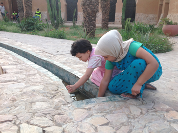 La Source Bleue is the colonial appellation designed to help promote Tiznit as a tourist destination. Located at the ancient heart of the city, its Arabic name Aïn Aqdim means “the ancient source.” For the inhabitants, it is "the initial source, i.e. the source from which everything has begun, symbolizing the foundation of Tiznit" (Naji and Goeury 2020: 8, translated by the author). The discovery of the spring is connected to the myth of Lalla Zninia: a woman, accompanied by her dog, who settled nearby. Buried in the adjacent mosque, her presence ensures the sacredness of the place.[3]