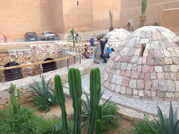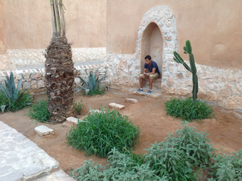 The Kasbah Aghenaj, at the opposite side of the spring, is an enclosed space surrounded by the earth walls of a fortification. Initially a barracks, then a civil prison, it is now an urban space open to the public. It can be accessed by a door raised a few steps from street level. Interestingly, this slight elevation offers a panoramic listening experience. With the exception of a single tree, the space of the Kasbah is made of stone and designed as a theater, with multiple steps around a podium that is used for ceremonies (Fig. 3).