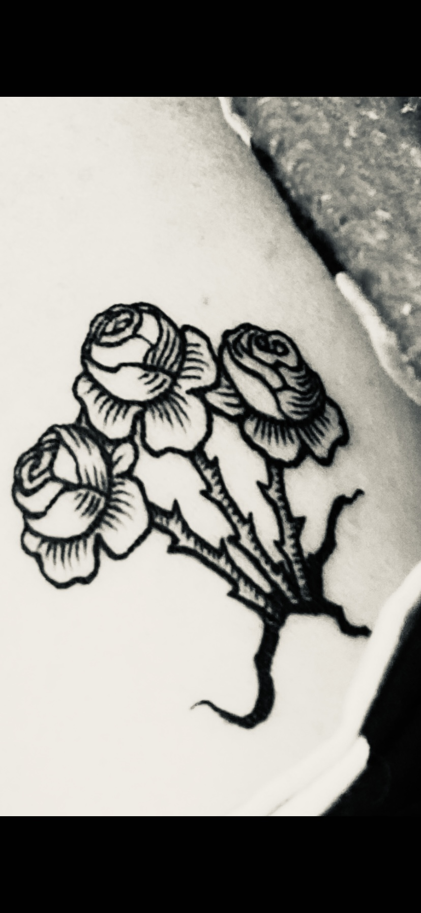 ... and out  of this  broken heart three white rose kept  growing. With thorns making the blood turn into a purple flooding...