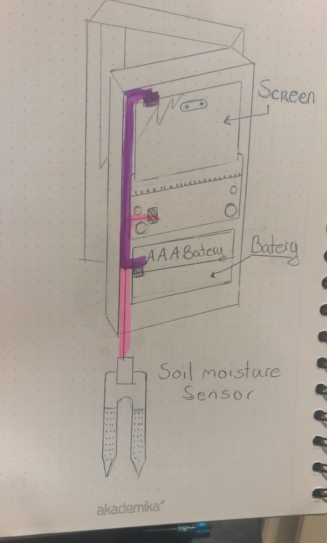 Det første problemet jeg fikset var fuktighets sensoren. Jeg trodde at USB kabelen var nok til å gi strøm til resten av delene til Micro biten men jeg tok feil. Etter mye forvirring så bestemte jeg meg for å skrue på strømmen til batteriene for å se om løsningen var så lett, og det var den. Fuktighets sensor funket endelig! Pumpen funket foresatt ikke, jeg tok så kontakt med kohorten min og fikk vite at de også hadde samme problem. Kohort gruppen min fant så ut at den eneste grunnen til at pumpen ikke funket var fordi vi foresatt hadde koblet USBen til Micro biten. Litt trist at det tok meg så lang tid å finne ut av hva problemet var når det var så lett, men jeg var ikke alene med det problemet.