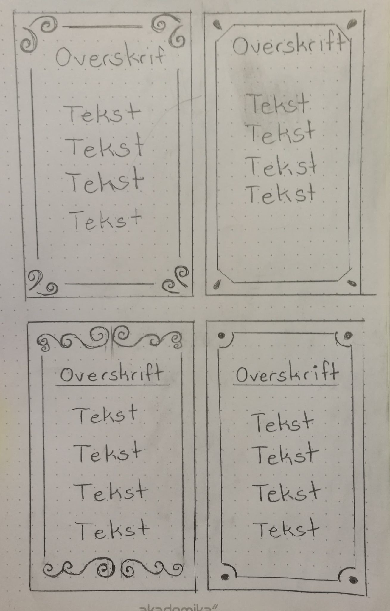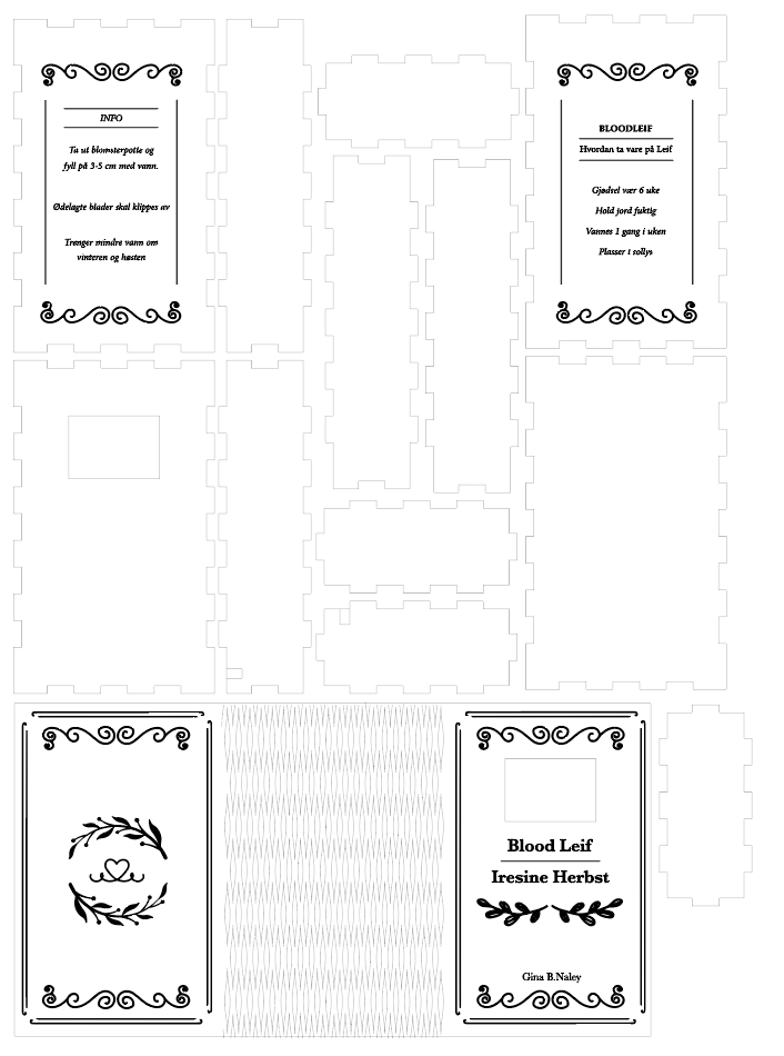 Når jeg fikk tilbakemeldinger om at det så veldig uryddig ut begynnte jeg å tenke på hvordan insiden skulle se ut. Derfor begynte jeg å skisse for innsiden av boken. Jeg vil at den skal ha en vintage look! Har litt forskjellige ideer, men dette er hva jeg har tenkt så langt. Jeg forutsetter også at teksten blir mer lesbar når jeg får brukt lasserkuteren til prosjectet!