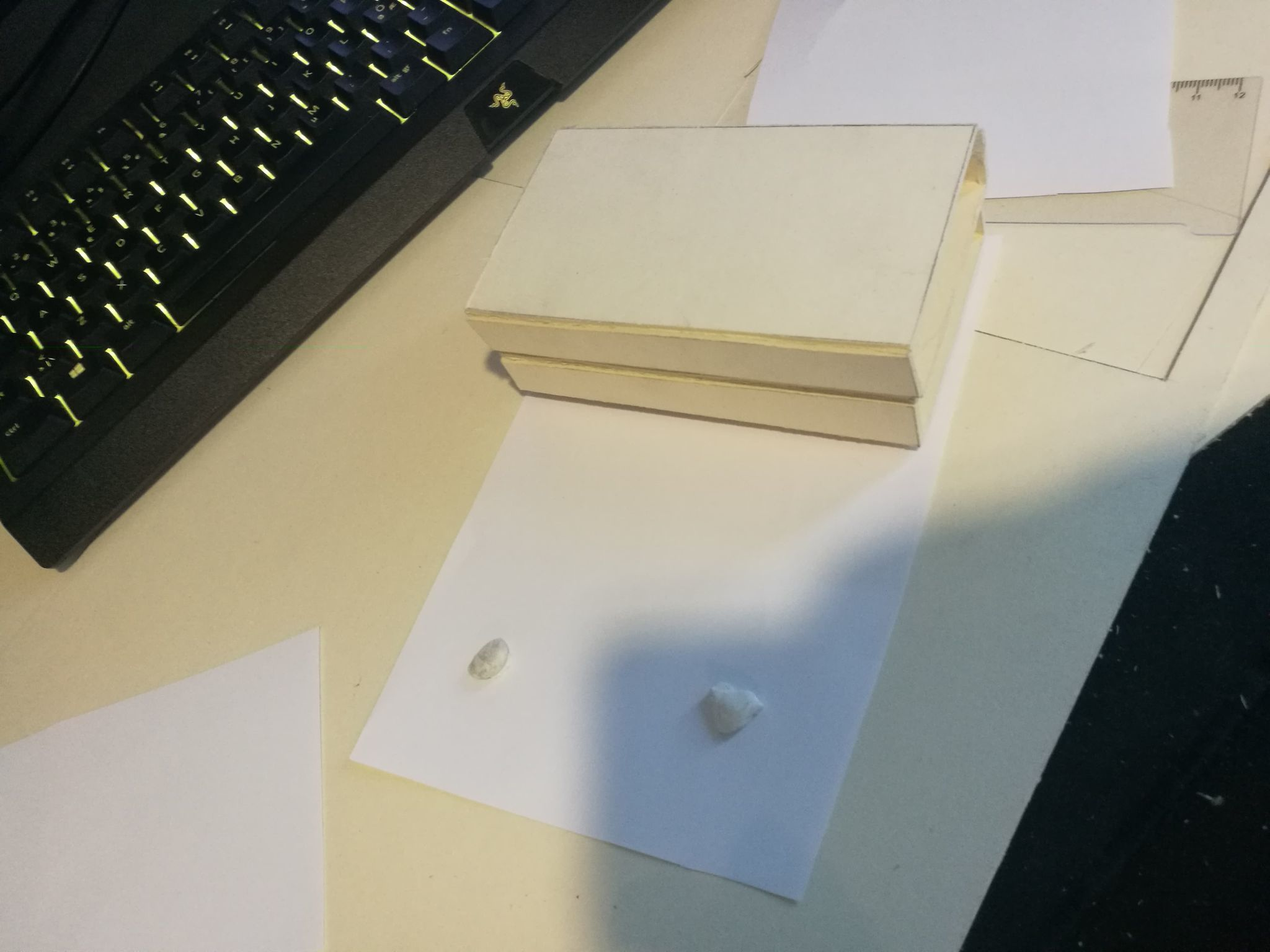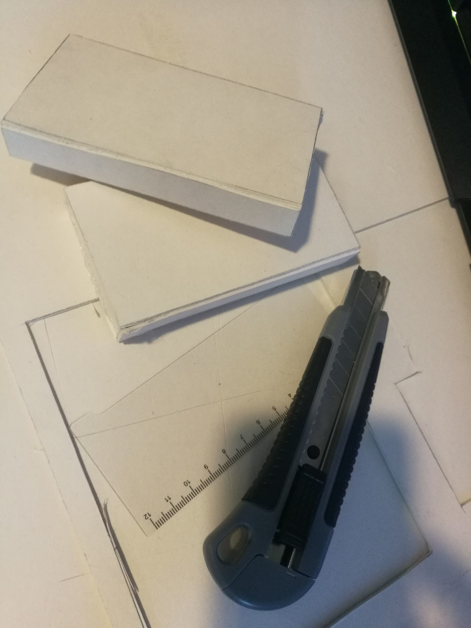 Jeg satt i et par timer og brettet bokser, hørte på musikk. Ble mer overasket av at designene jeg var minst begeistret for så mye bedre ut en det jeg forventet. Designet jeg først likte best er nå minst sannsynlig til å bli brukt. Det var positive og negative ting med hvert av designene.