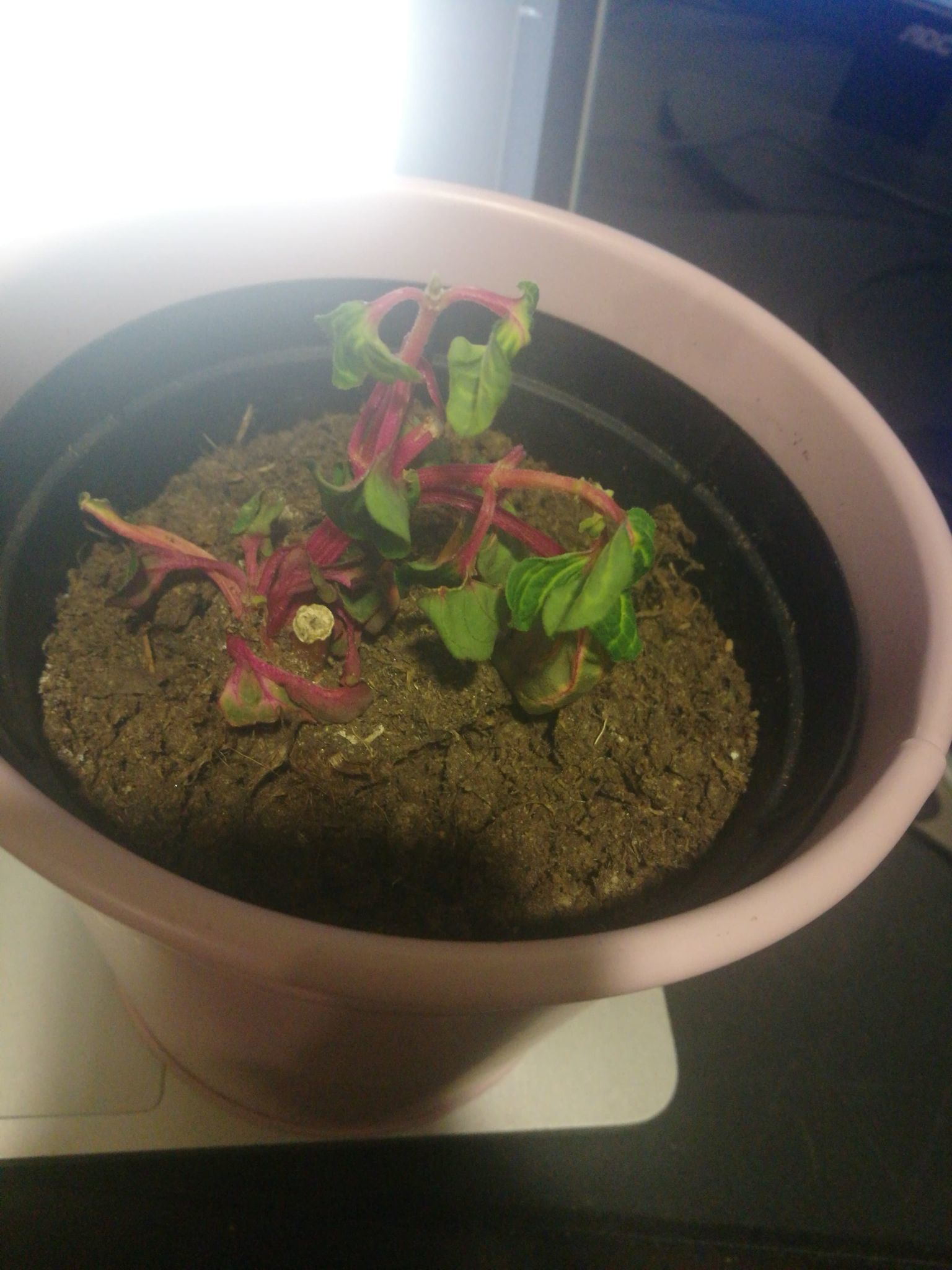 Planten har vokst veldig mye, og blitt mye større enn det den var i starten. Den har vokst ca. 6-8 cm på under 2 måneder. Problemet som har oppstått er at jorden til planten har startet å mugne, hvit og gul mug. Jeg vet fra før av er det kan være på grunn av vannet jeg sprayet på planten av og til. Vannet som ikke kommer på bladene men på jorden begynner sakte men sikkert å mugne.