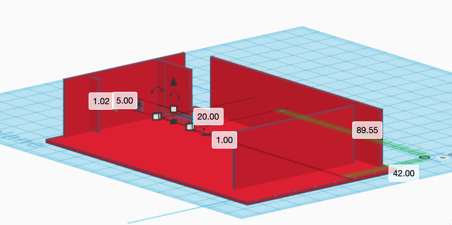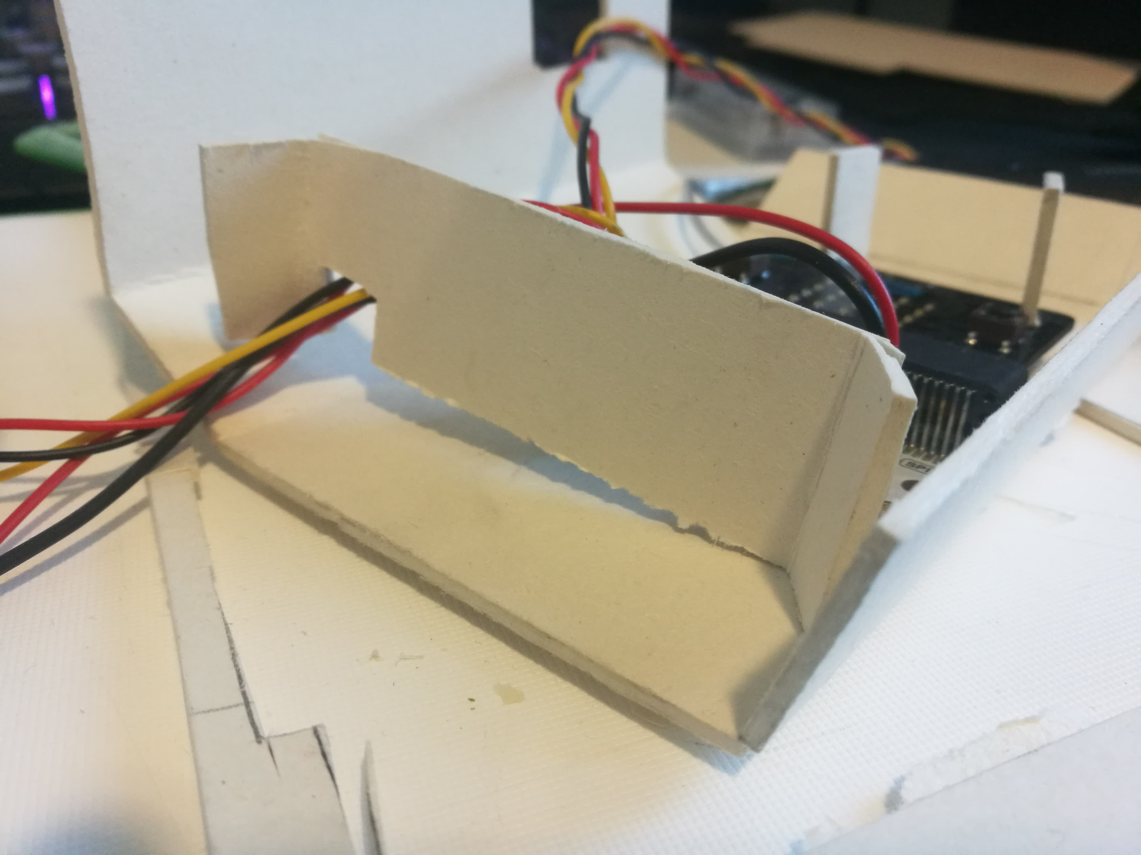Jeg har begynnt å bygge skjelett til skilte, jeg begynnte så og testet det ut og fant ut at alt funket greit utenom støtten til mico:biten. Jeg må justere høyden og samt kan jeg justere at veggene er litt lavere.