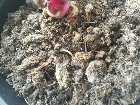 Han anbefalte meg og sette planten under en kran, og la vannet forsiktig renne igjennom planten i 1 minutt. Etter det skulle jeg sette planten tilbake til potten og vent 20 minutter, og tøm deretter vannet som ligger igjen ut av potten. Etter 30 minutter så at jeg planten livnet opp igjen med en gang.