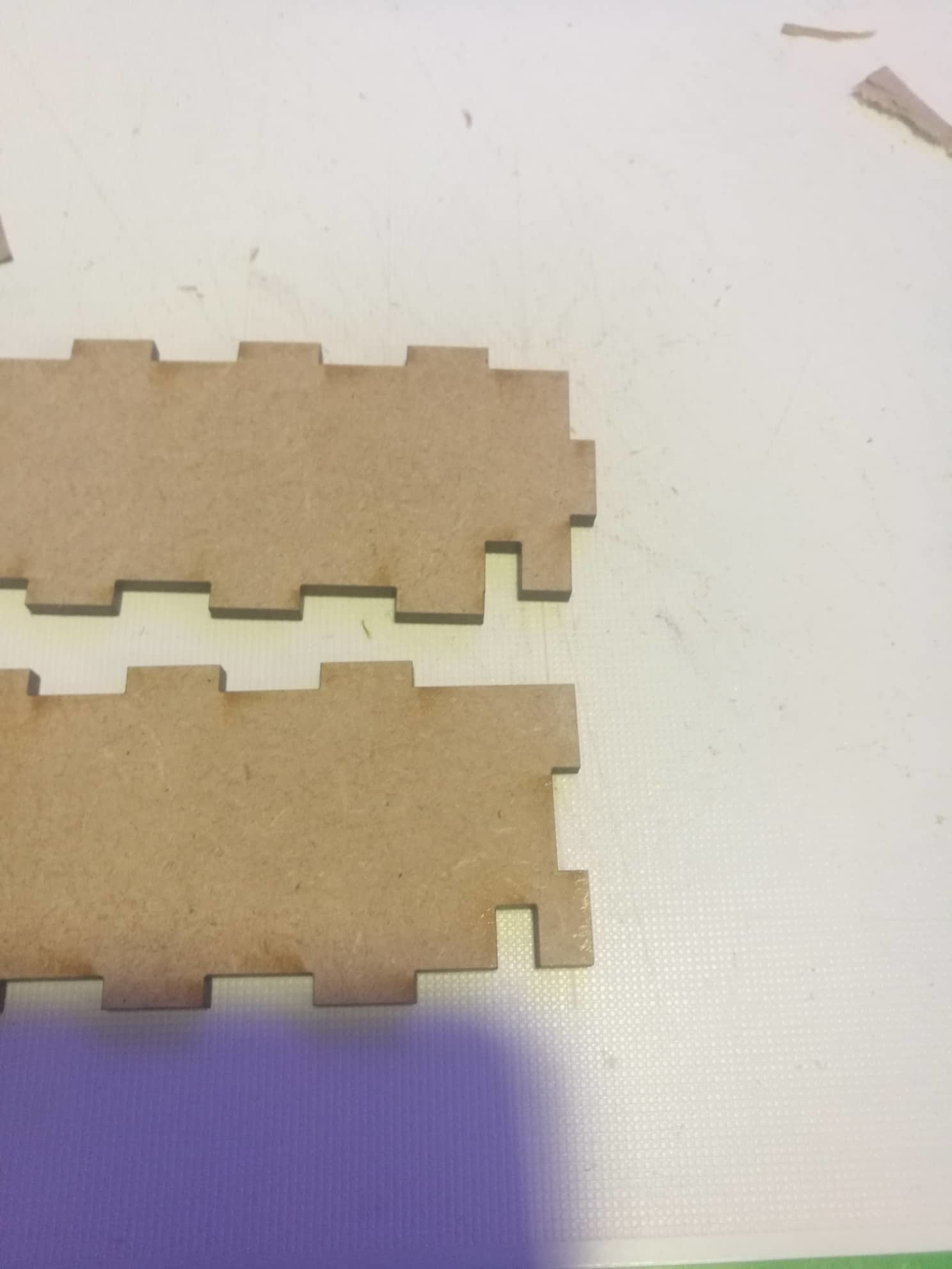 Jeg er veldig fornøyd med første kutting! Jeg har et par små problemer som at plassering av kabel hull er plassert litt feil, samt boksen skulle vært en smule større for at micro:bit og kabler skal få plass. Jeg har sendt in en ny fil inn til kutting!