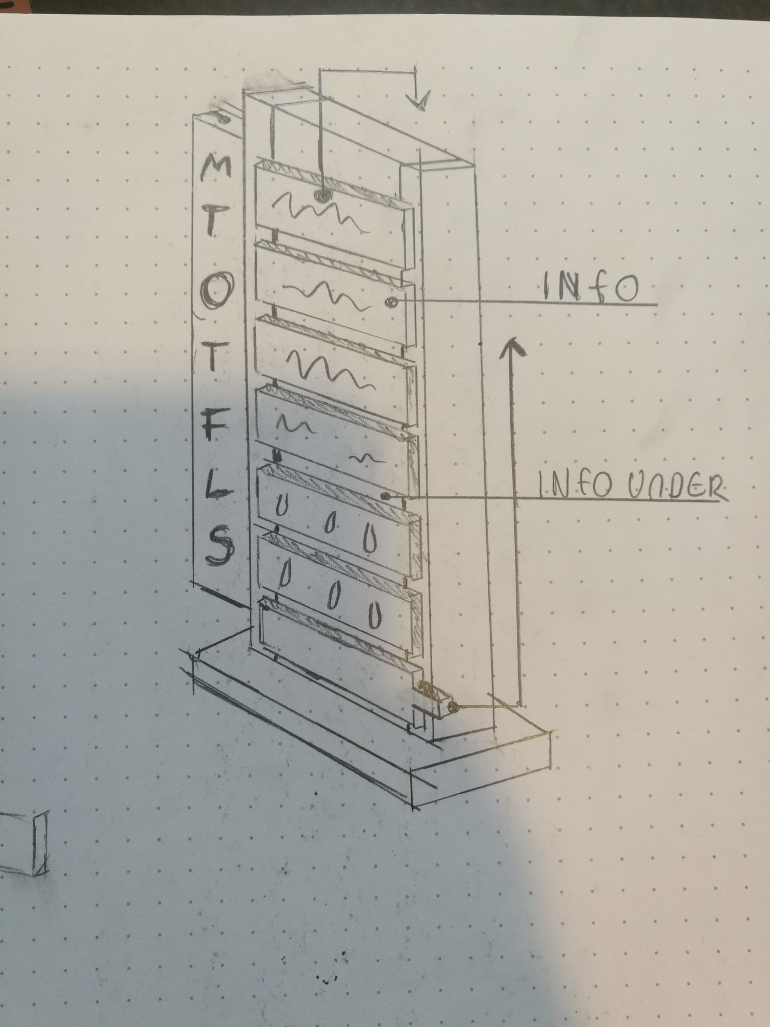 Bilde (4) var skissen jeg var mest engasjert i, men er for øyeblikket ikke min favoritt. Tanken var et skilt som har et lag man kunne dra vekk som igjen viste mer info, liker tanken godt. Men det ser ganske rotete ut