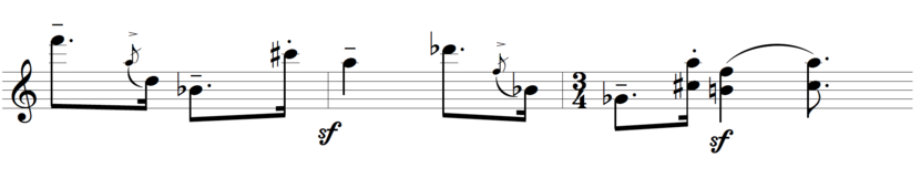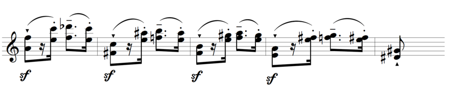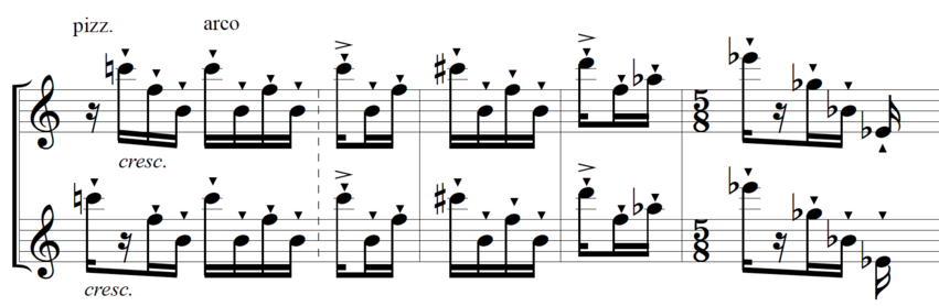 See illustration 4: “String Quartet No. 2”, 3rd movement, reh. No. 12, 1st violin -