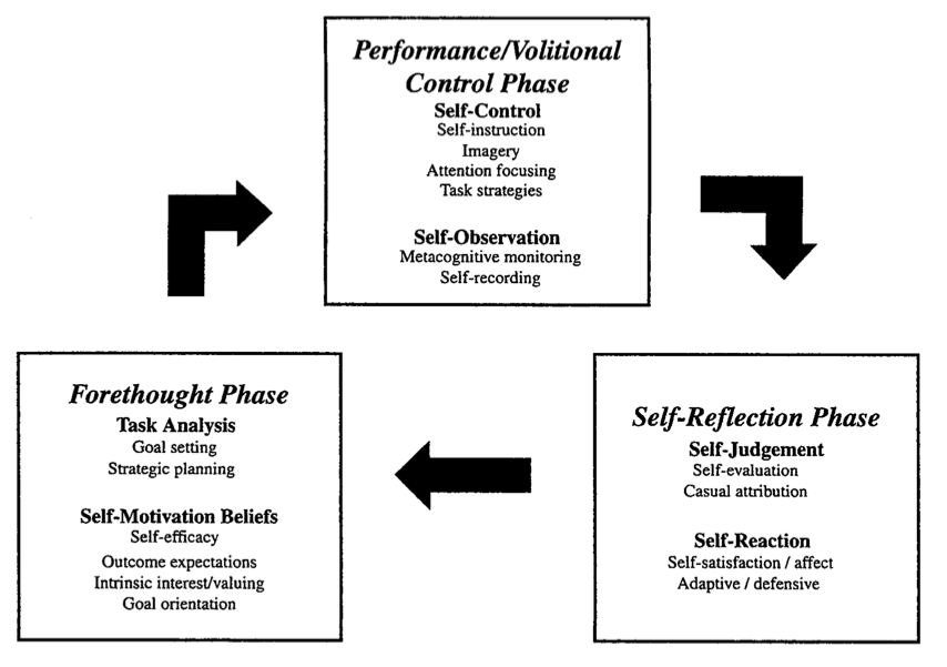 Barry Zimmerman (2002) describes self-regulation as a cyclical process with three phases: forethought, performance control and self-reflection. Below is a description of the phases and processes presented in his model as well as their relevance to musicians (McPherson & Zimmermann 2011).