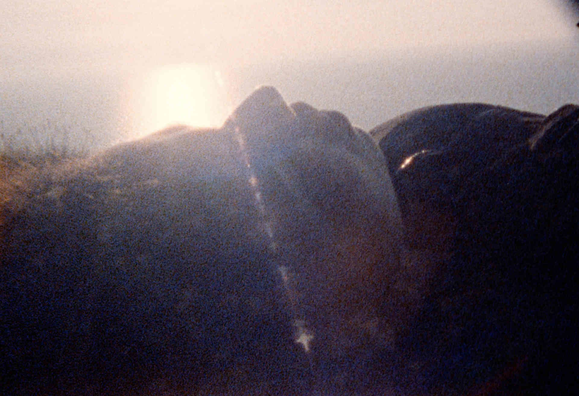 For Becoming Granular, I wanted to explore the countryside (as compared with the city environments of the previous film), which reduced the unpredictable complexity of the visual elements. However, the dense complexity of the city encountered on foot was here compensated for by making the trip in a car, which gave us the opportunity to cross considerable distances (often at random), and so, at this speed, the potential for contingency of the countryside environment was increased. On the basis of a casting process, I selected three performers; this inspired me to alter the concept of the previous film by making the car trip twice, swapping one of the performers after the first day. The change in dynamism between the two pairs of performers had a radical influence on each trip, and so the two adjacent trips to the same destination in Wales ended up forging a different sense of atmosphere. The unique energy between the two performers influenced the spontaneous choices made about the journey itself, which altered the locations we found ourselves in (where locations were dictated by general logistics, such as the cottage that we stayed in, different navigation and use of these locations naturally emerged during filming). This, in turn, had an influence on the film material itself, giving rise to unique, singular moments in which performance and locations combined unpredictably or fortuitously.
