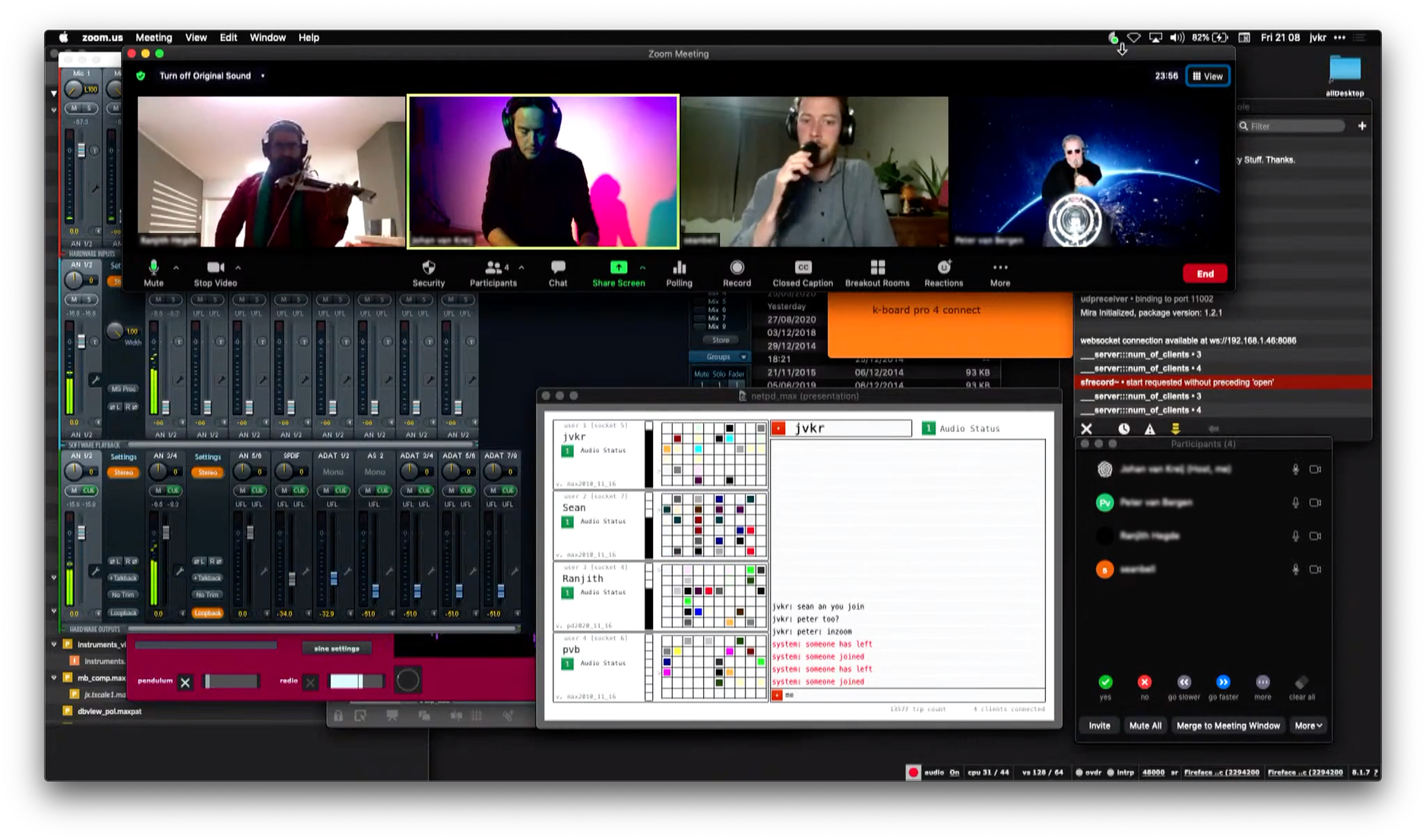'What may have happened…' is a research driven by the desire to augment the sense of sharing in a decentralized improvisation—a creative musical situation in which the participants are in different locations. It focusses on extending the amount of communication channels in a decentralized improvisation setting, beyond the audible and visible. The aim is not just adding extra layers of data exchange, but introducing various modes of interaction. Specially developed software is used to realize this.
