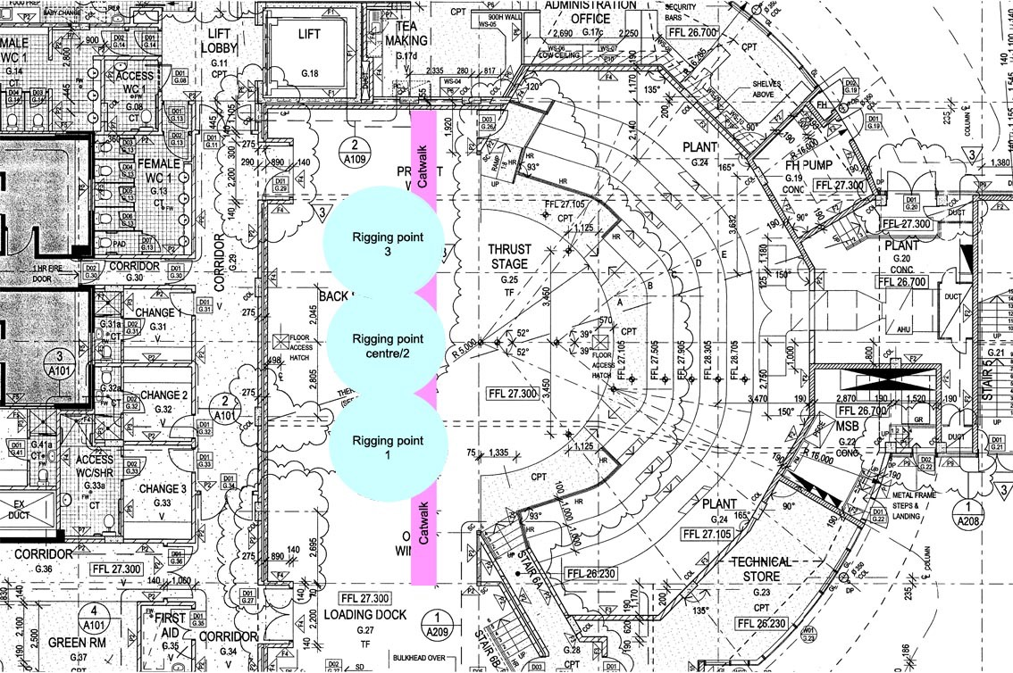 3. what was viable for the stage and space and what could still seamlessly accommodate live instrumental performance.