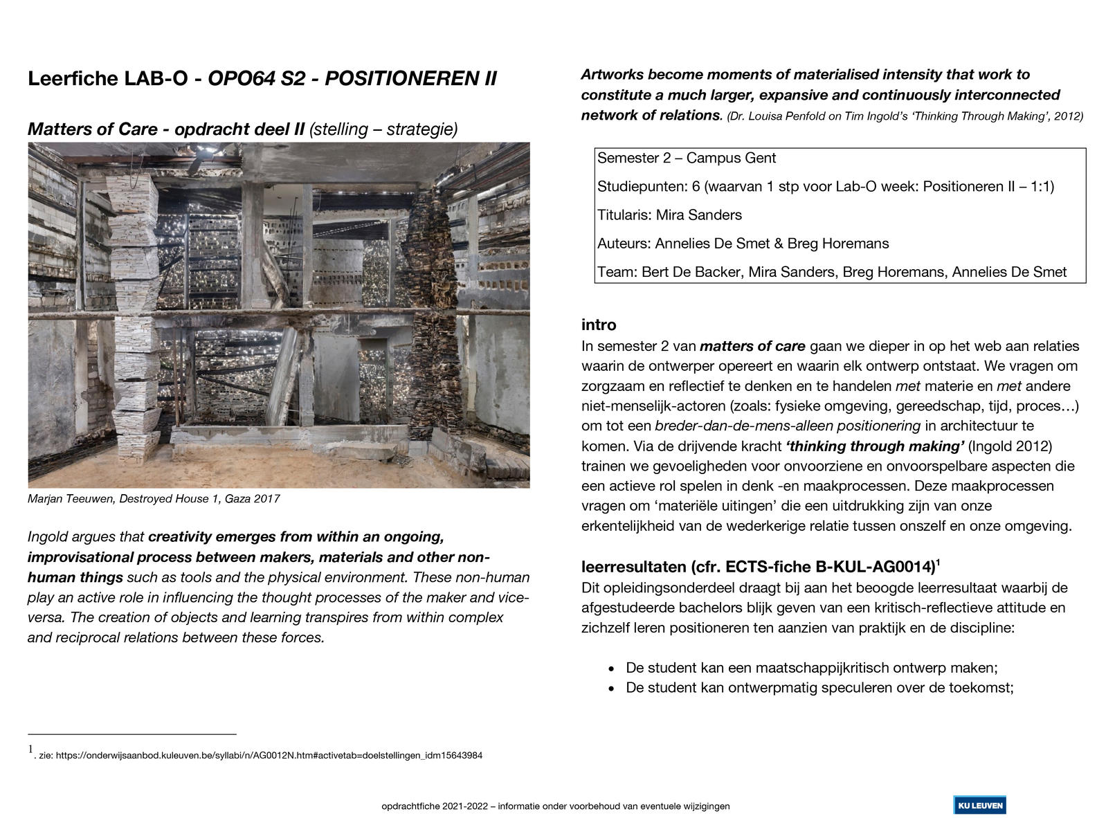 This is a collective introduction page to 'Matters of Care - Positioneren I-II', a project that runs from September 21st to June 21st 2021 for the 3rd bachelor in Architecture at the Department of Architecture of KUL in Ghent. Dit is de collectieve introductie-pagina voor 'Matters of Care - Positioneren I-II', een project dat loopt van 21 september tot 21 juni 2021 voor de 3de bachelor in de Architectuur van het Departement Architectuur aan de KUL, in Gent.