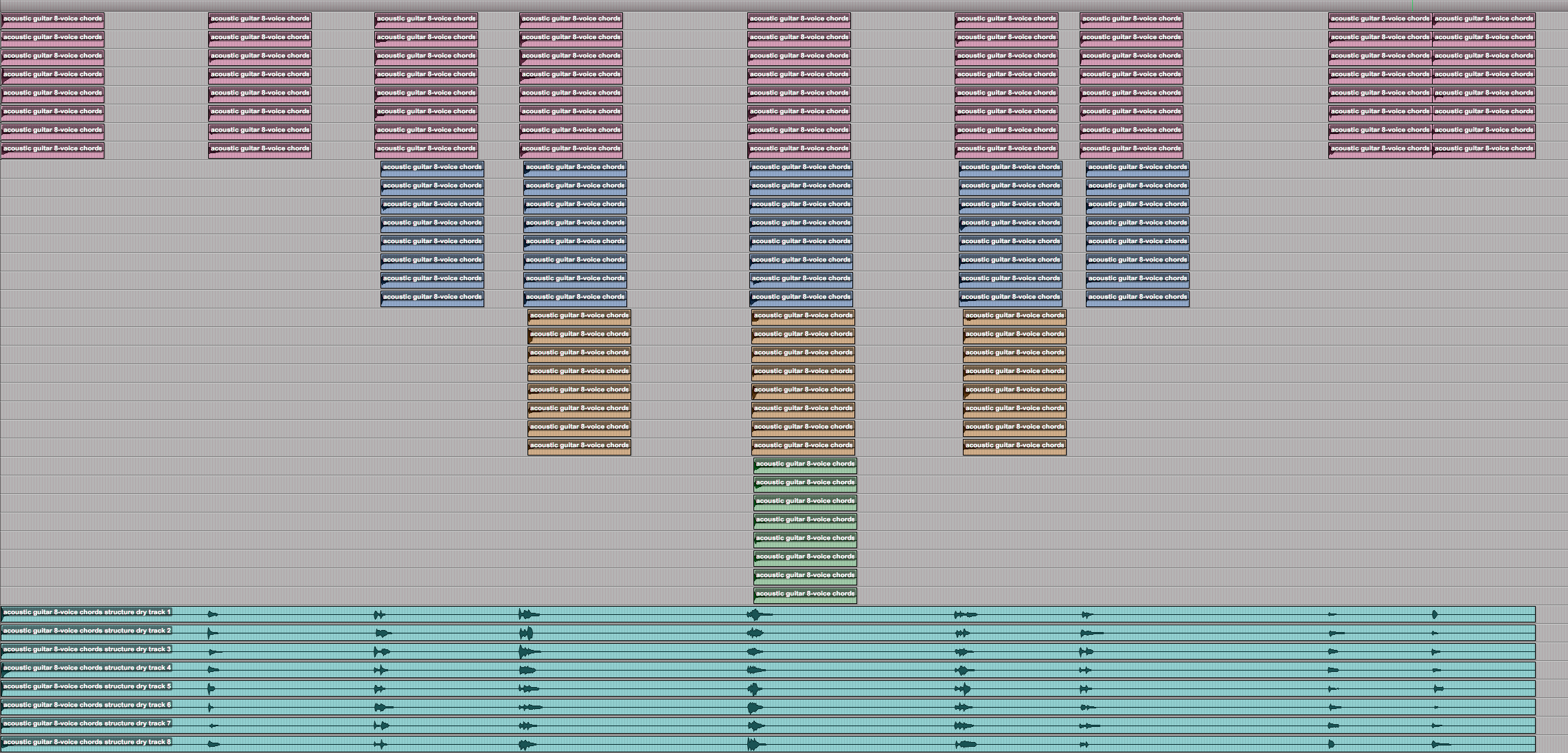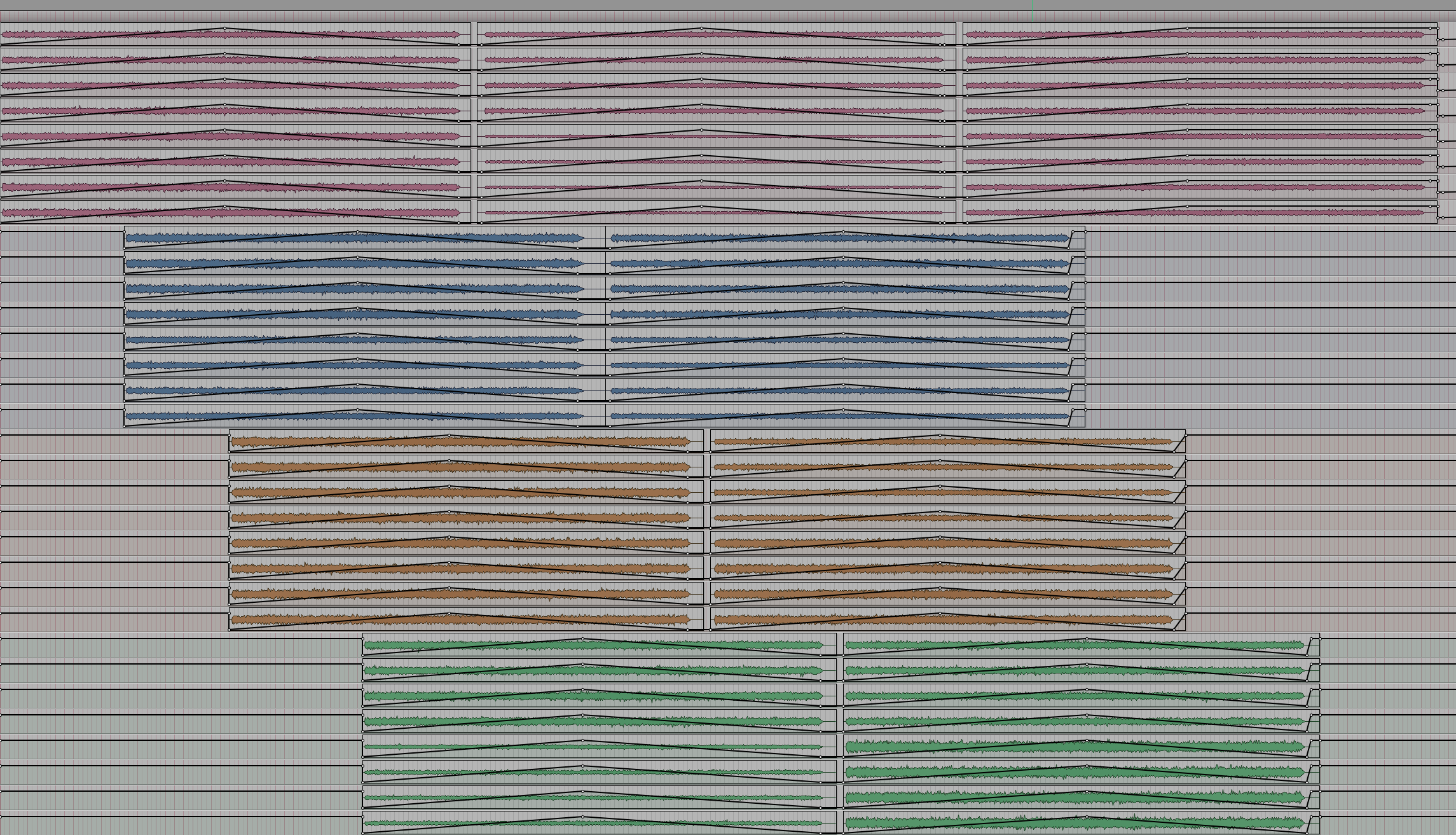 Figure 26: Nine 8-channel granular sounds with overlaps and volume envelopes.