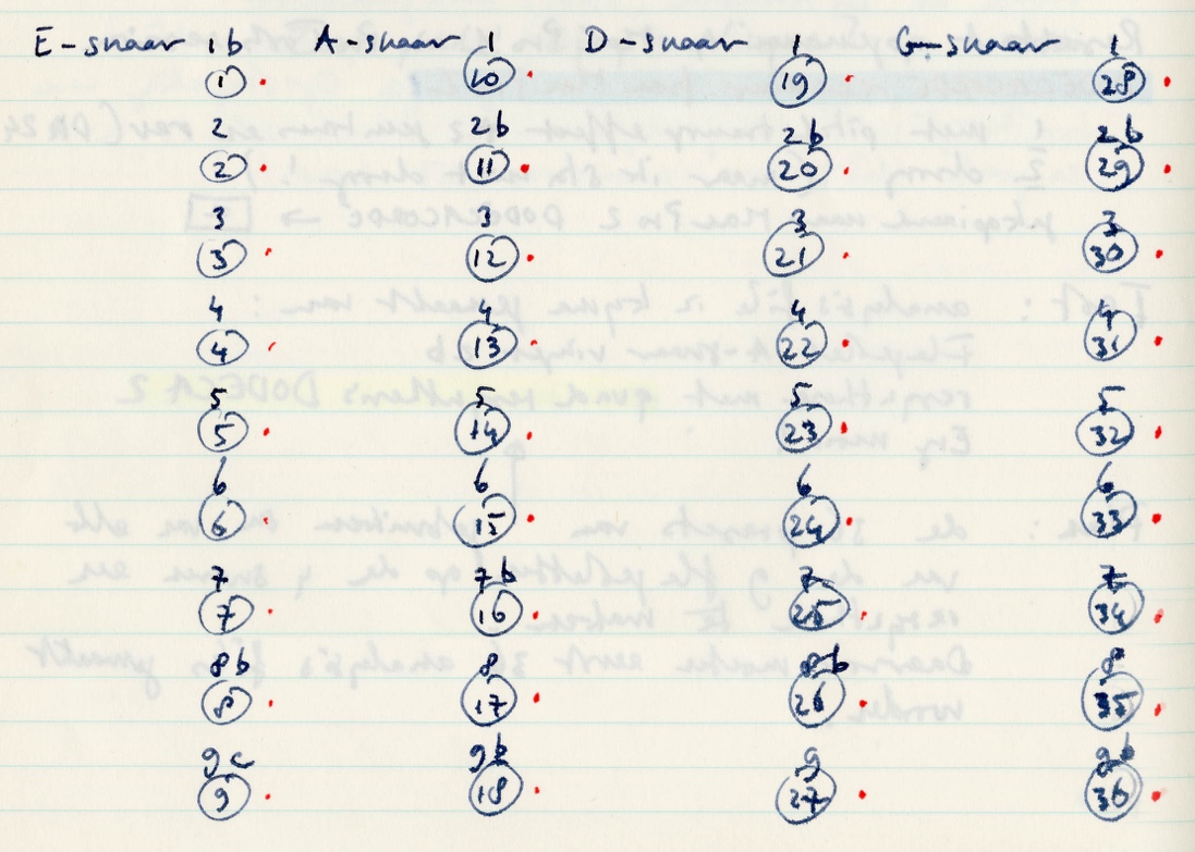 Figure 29: series, chords and pickup selector positions (the numbers 1 to 4 correspond to pickup selector positions 2 to 5). Each chord has 4 tones, 3 chords make one complete twelve-tone series.