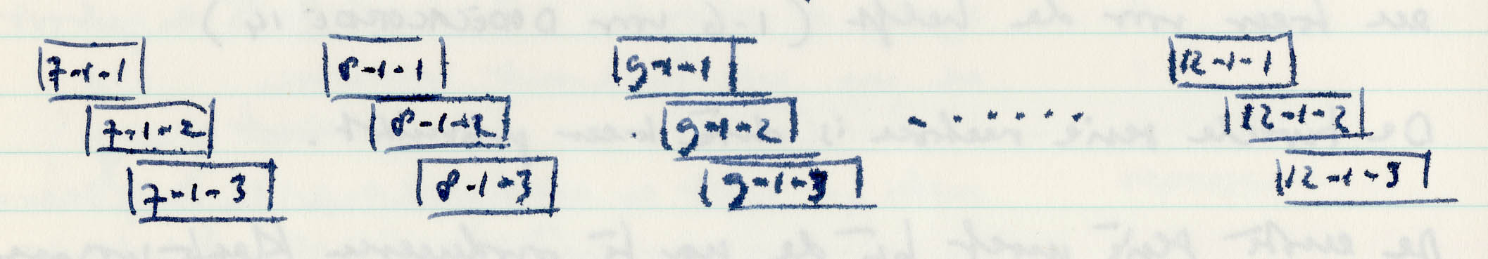 Figure 4: twelve-tone series 7-1 to 12-1 and the (broken) chords derived from these series.
