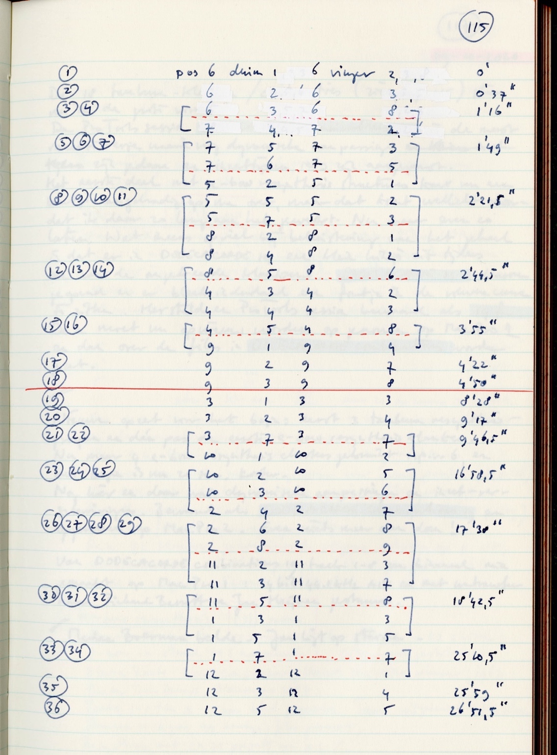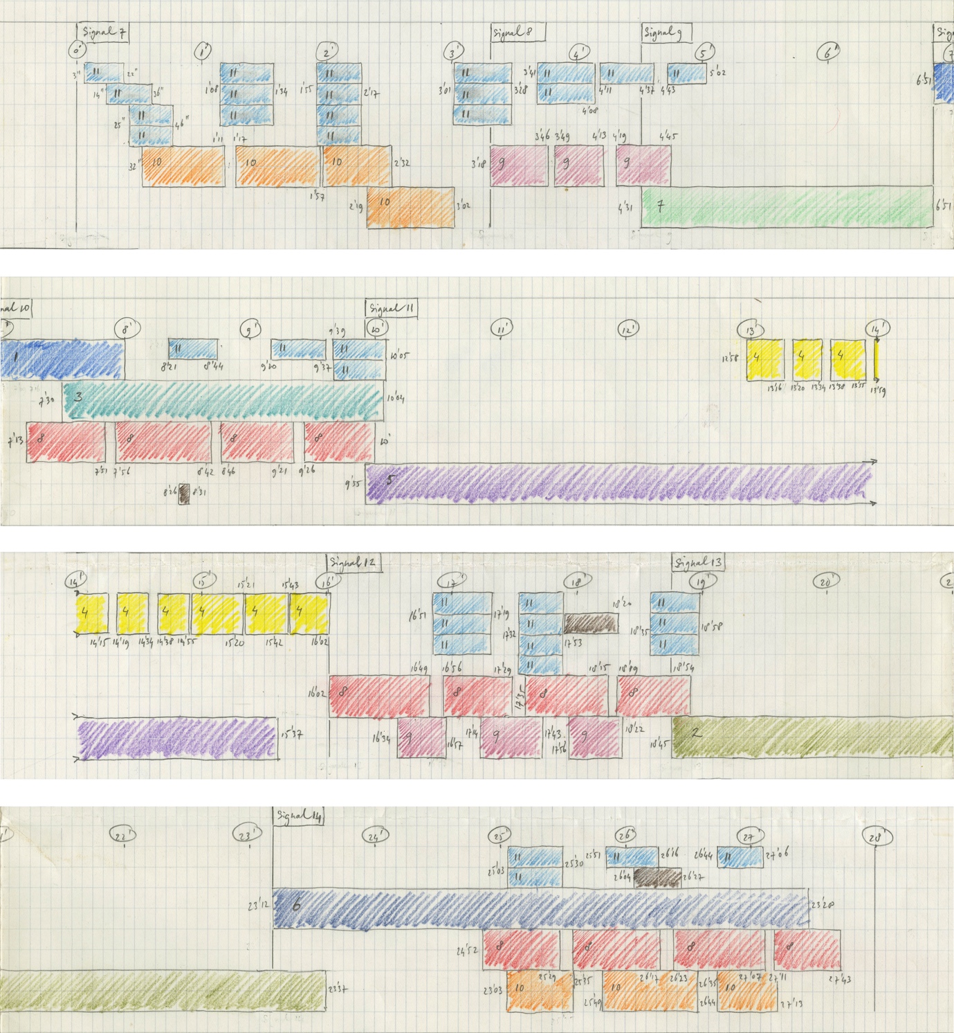 A total of twelve synchronisations were made (one for each of the twelve-tone tone series 1-1 to 12-1). Synchronisations 1 to 4 were used in section 1, synchronisations 7 to 9 in section 8.