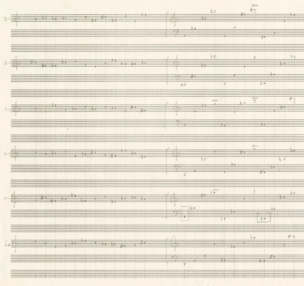 18 chords of 8 stopped tones were assembled according to the chords of twelve-tone series 1-1 to 12-1 (see figures 3 and 4).