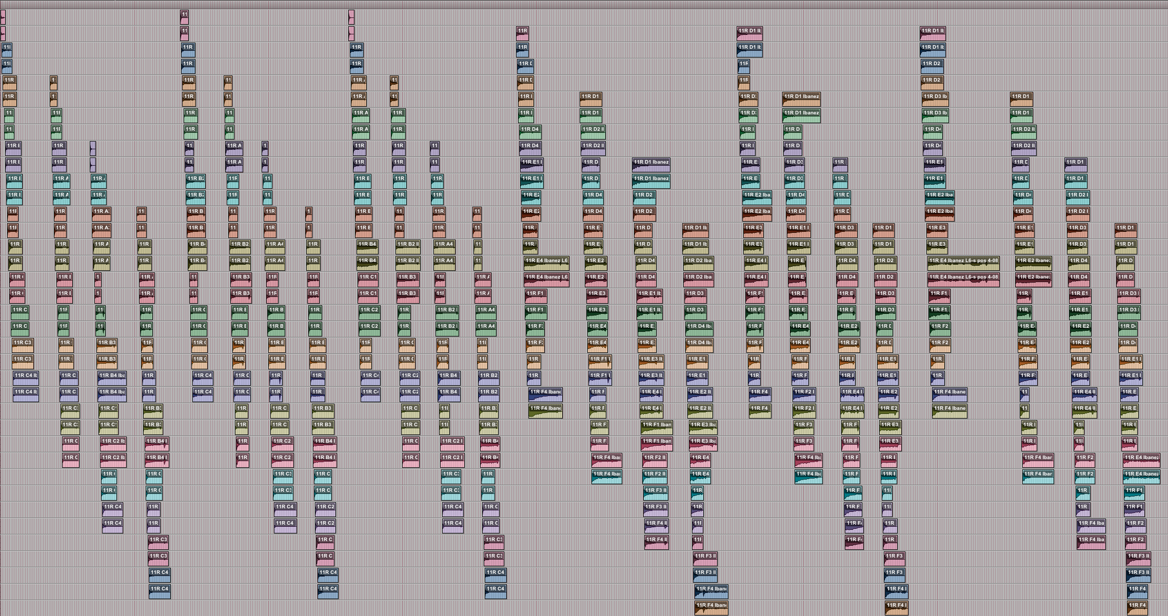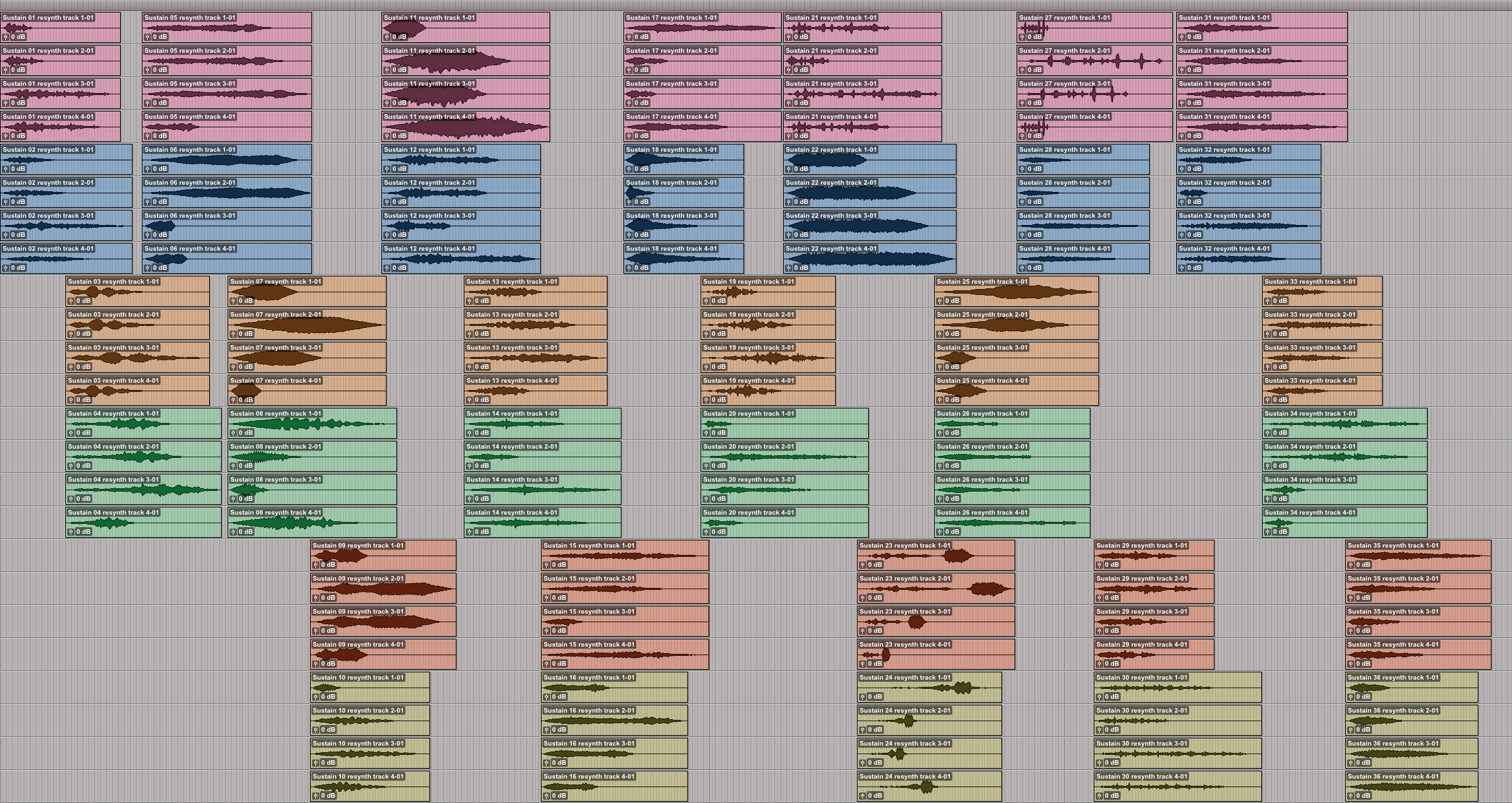 Figure 33: twelve 48-channel synchronisations of resynthesized e-bow sounds.