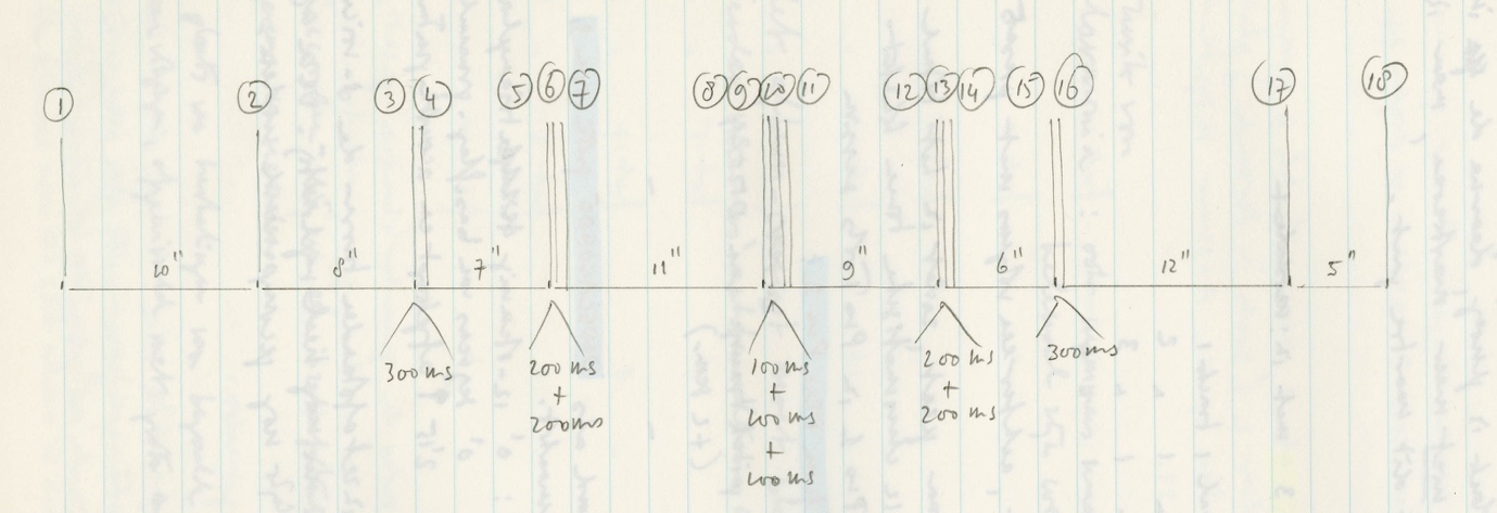 Figure 11: the 18 chords placed in a structure in which rapid successions of 2, 3 and 4 chords occur as well as single chords.