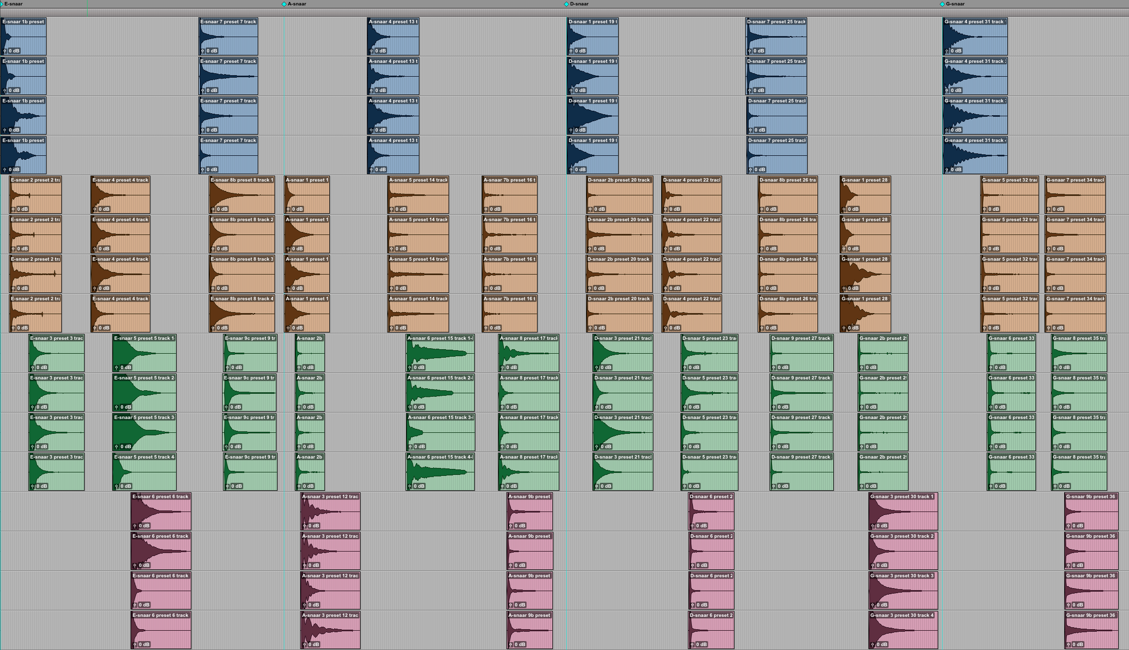 Figure 24: 36 resynthesized quadrophonic electric guitar sounds in groups of two.