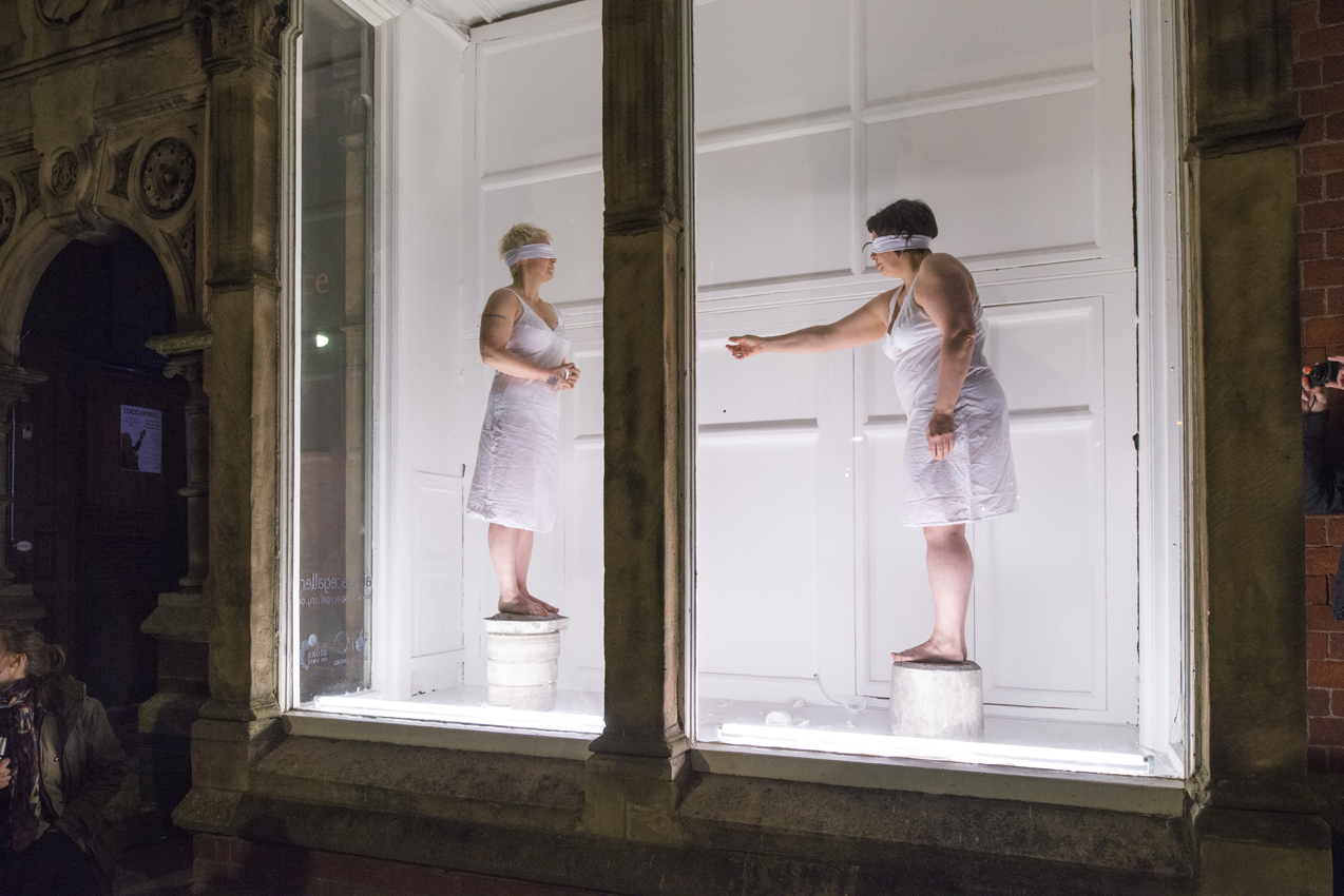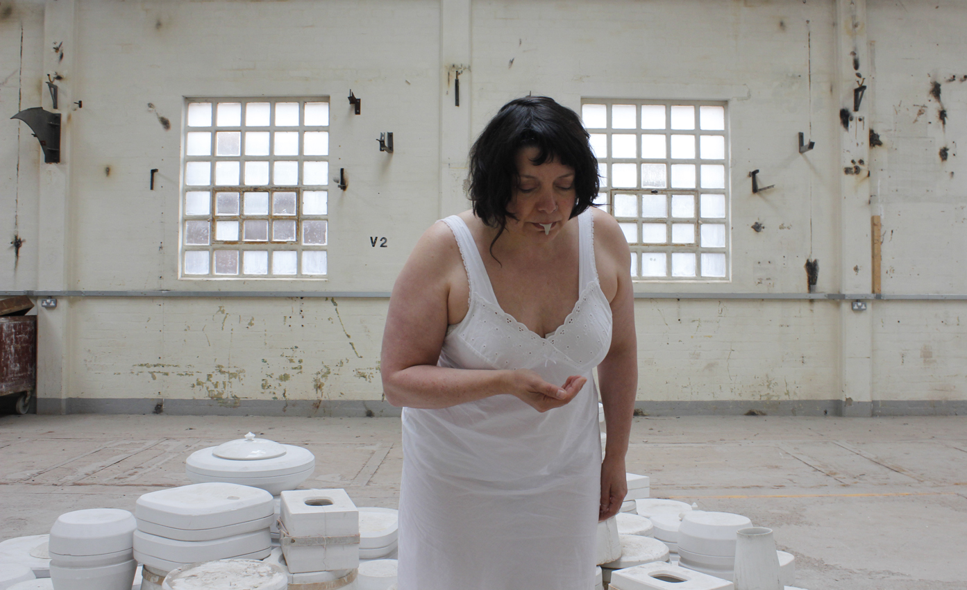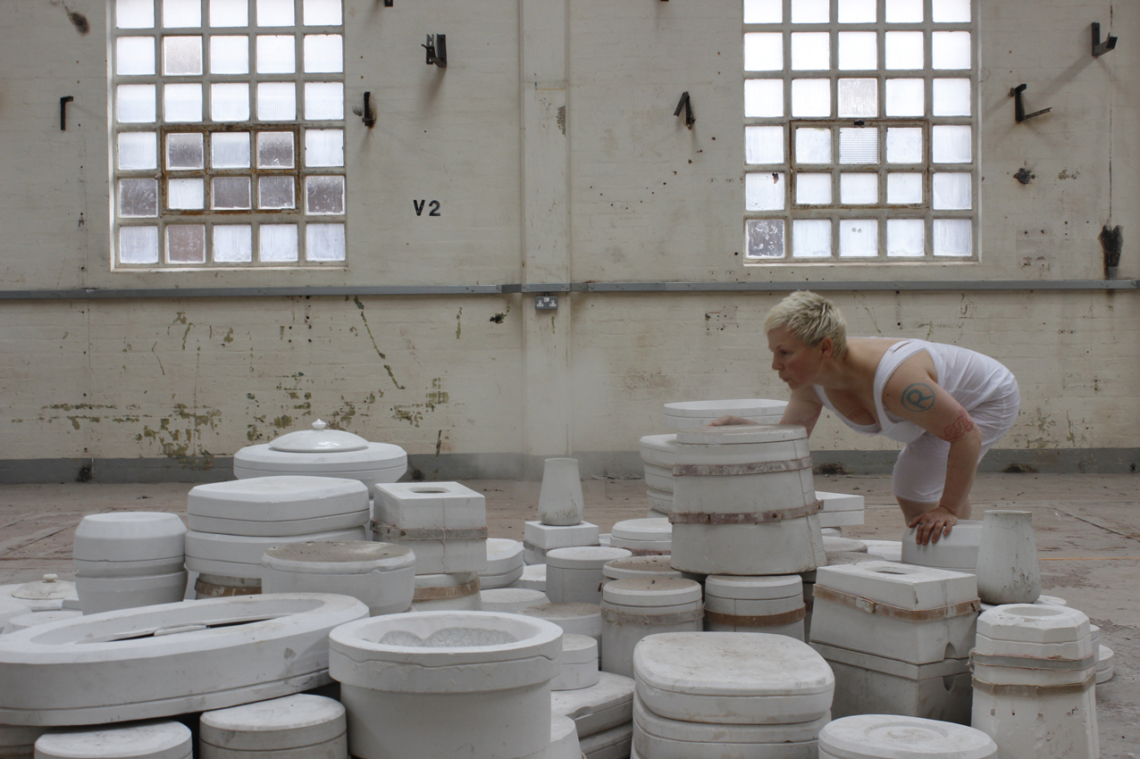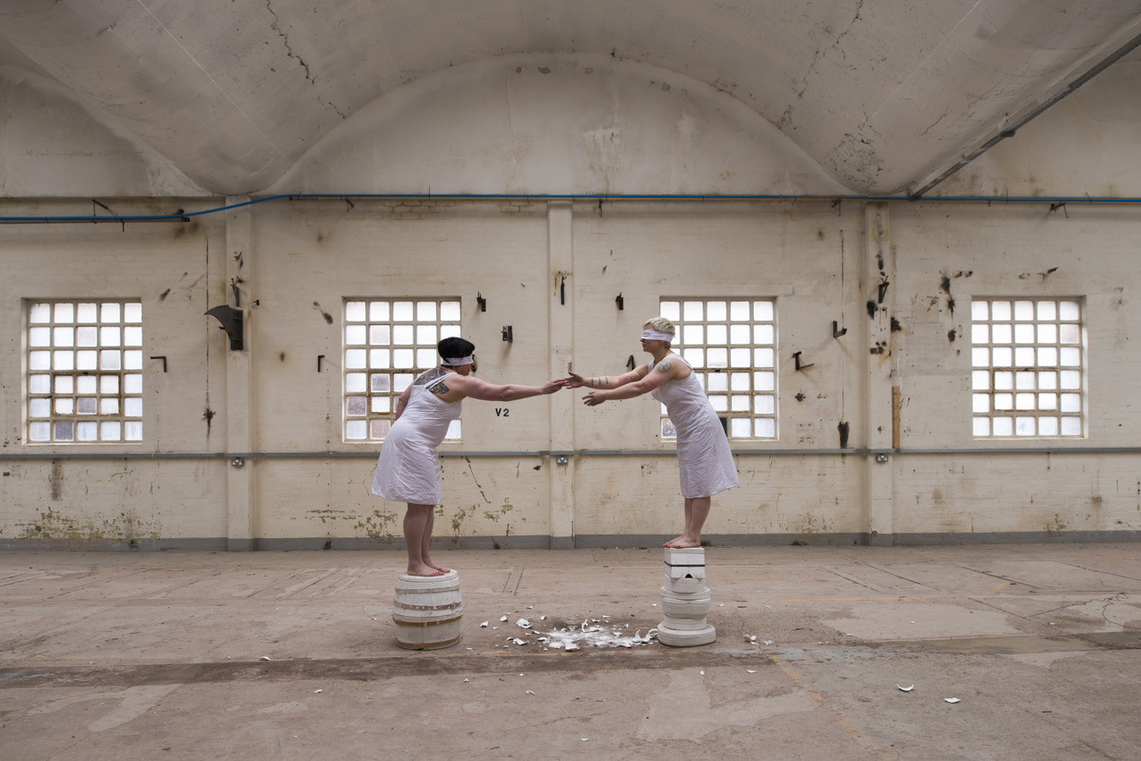 'Slipping' is a texture and an undoing, a friction in passing, a series of bodies that have lived in architectures of clay. Before then, after this, now then…Slippingis time, a moment between revelation and concealment, between standing still and moving on. It is a series of fluid and dislocated poetic gestures that grapple with what it means to remain. On a landscape of moulds two female performers consider what it is to be cast, to ingest and ooze and find form, as they resist their place in a post-industrial landscape that still yearns for the ready-made.