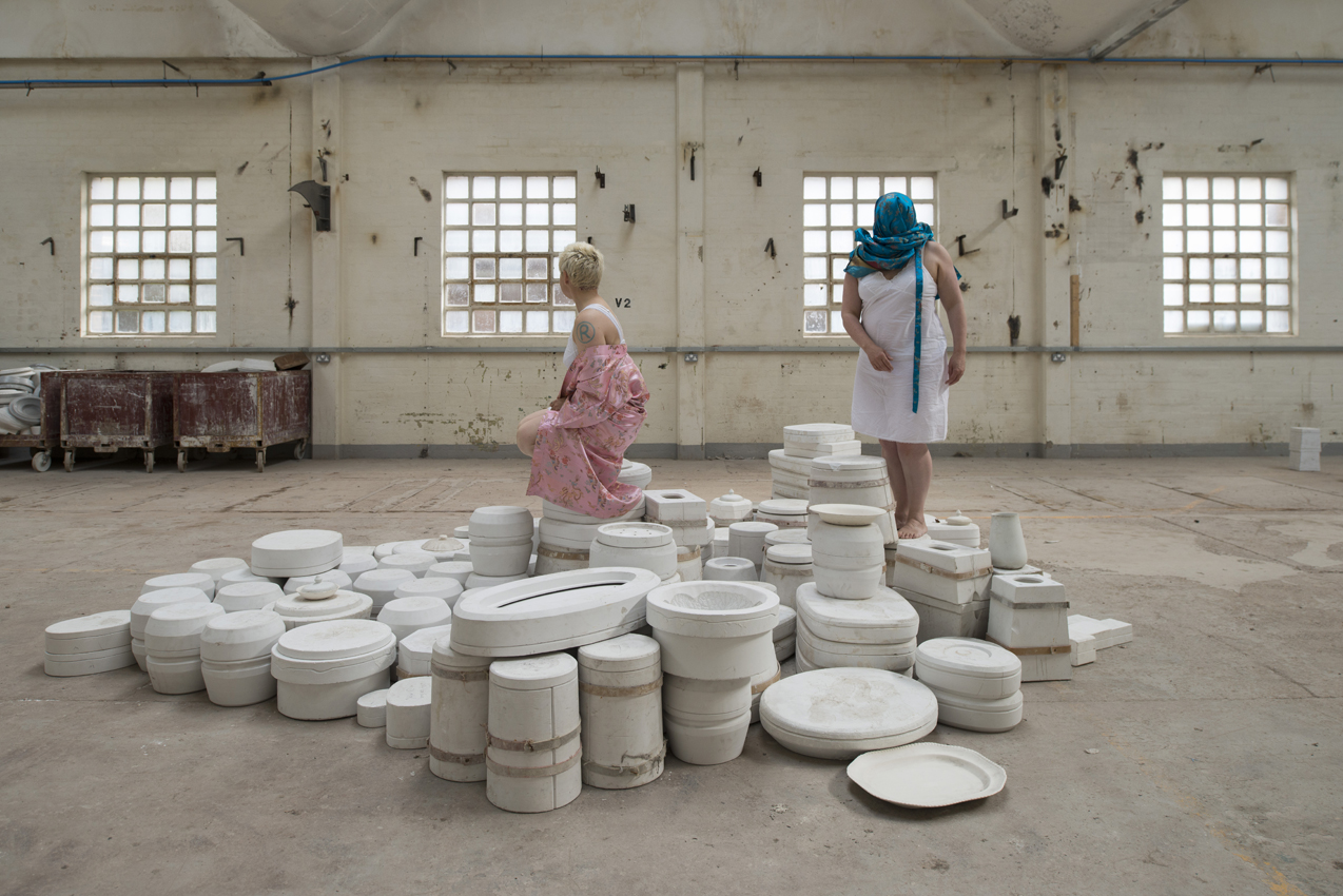 Traci Kelly and Rita Marhaug have worked on-site with performance improvisations in Spode Factory during 3 residencies (September-12, March and August-13)