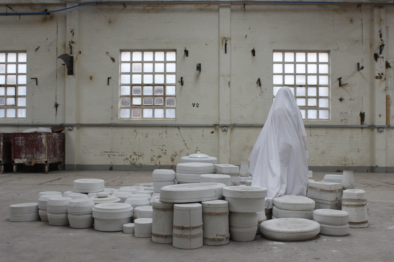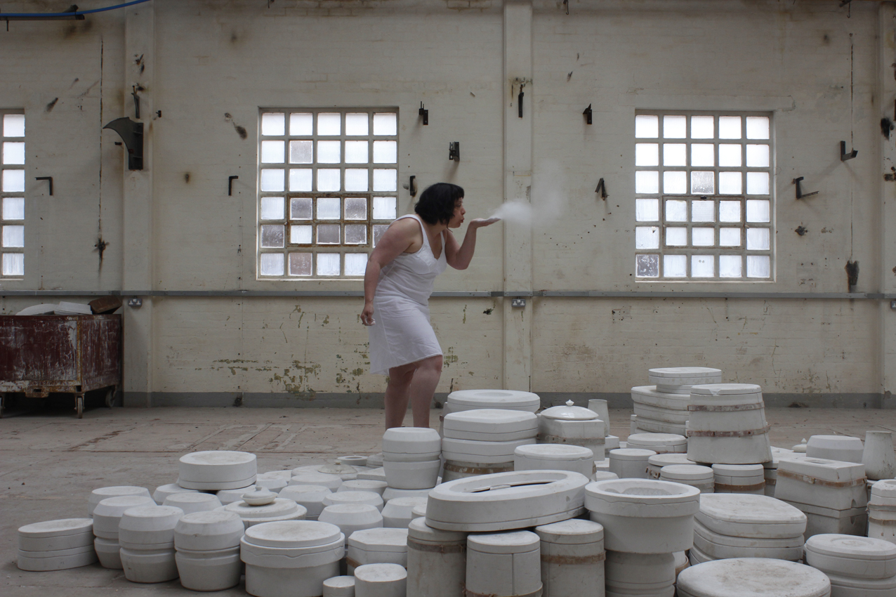 'Slipping' is a texture and an undoing, a friction in passing, a series of bodies that have lived in architectures of clay. Before then, after this, now then…Slippingis time, a moment between revelation and concealment, between standing still and moving on. It is a series of fluid and dislocated poetic gestures that grapple with what it means to remain. On a landscape of moulds two female performers consider what it is to be cast, to ingest and ooze and find form, as they resist their place in a post-industrial landscape that still yearns for the ready-made.