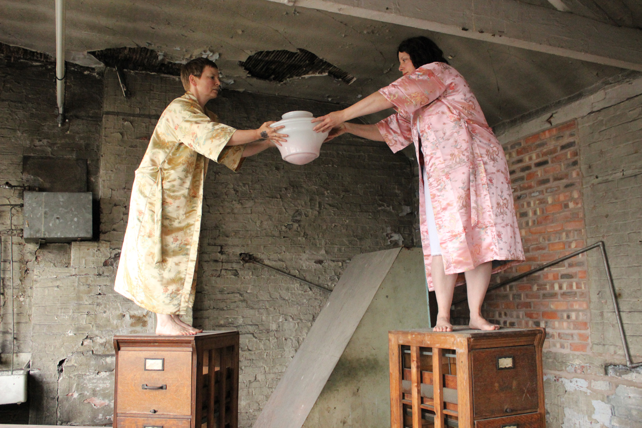 Traci Kelly and Rita Marhaug have worked on-site with performance improvisations in Spode Factory during 3 residencies (September-12, March and August-13)