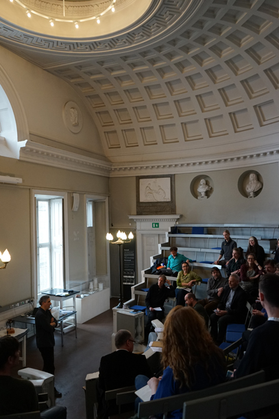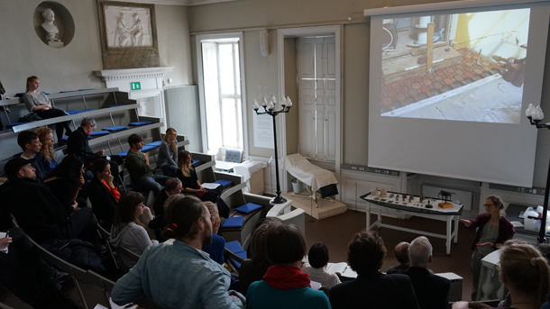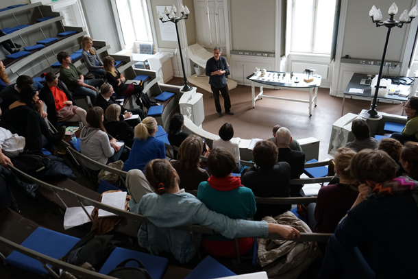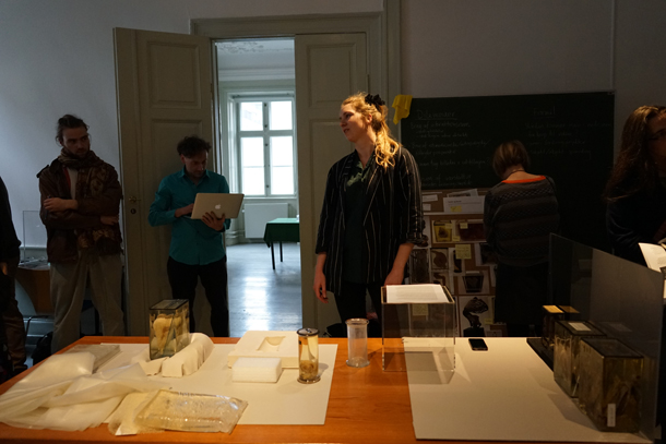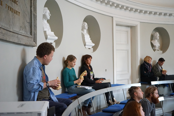 The institutions collaborating with Topographies of the Obsolete will all arrange their own workshops and seminars available for participants of the artistic research project and others interested in discourse with relations to the work done within the artistic research project. First institution out is the Royal Danish Academy of Fine Arts, arranging the two-day workshop "Touching the Tactile" at the Medical Museion classical auditorium and in the sculptor department's grand studio at the Academy. This seminar investigates the impact of the manner in which archives, collections of objects and artworks are presented to the public, and the potential that lies in the sense of touch: