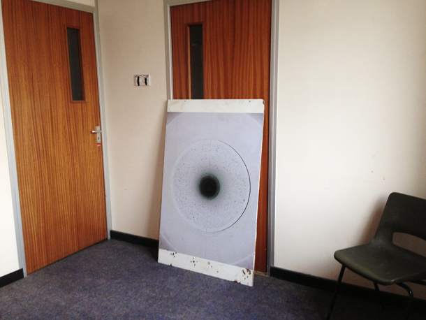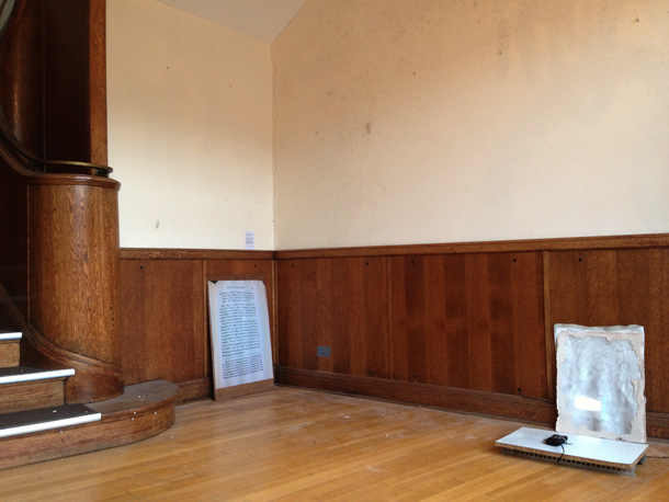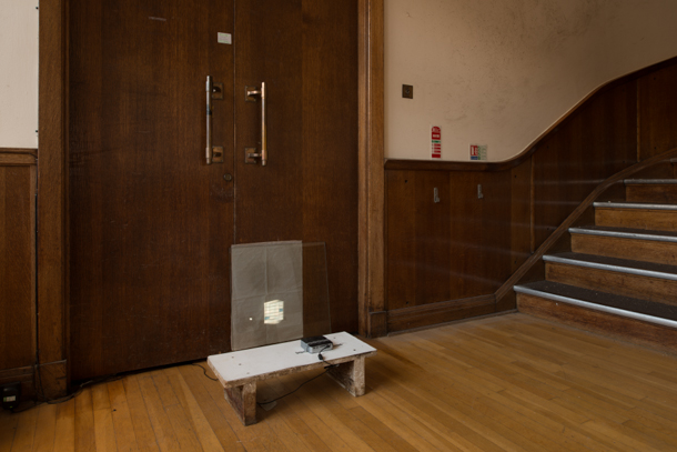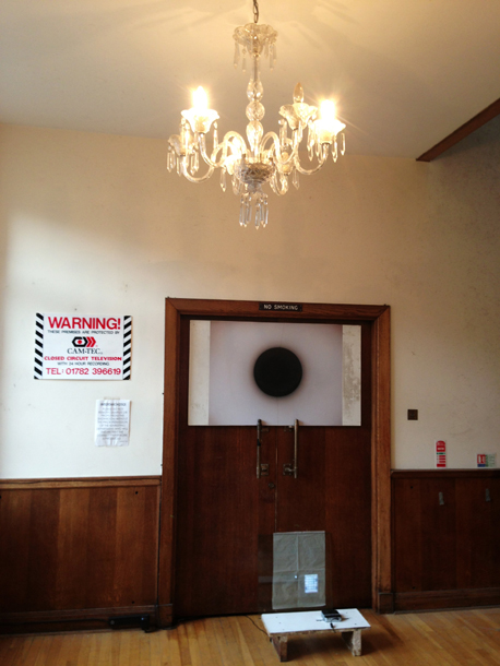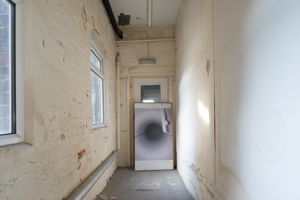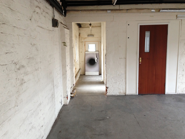 I have placed photographs on the old doors leading the way to the showroom that have now been blocked. At one door I have also placed my animated memory of the space that is now inaccessible. These gestures show the darkness of an unavailable space that would otherwise go unnoticed to visitors unfamiliar with the site and points to the negotiation of the collective memory that now constitutes a place such as Spode.