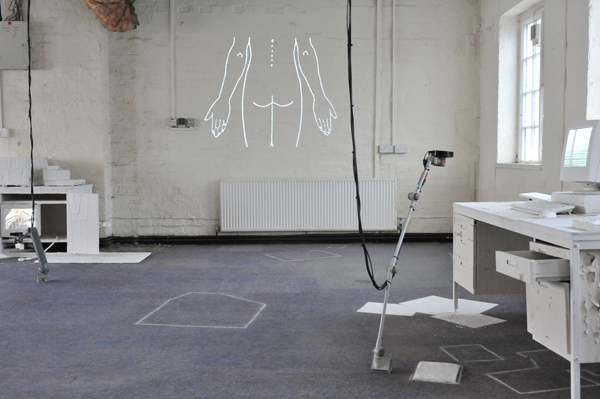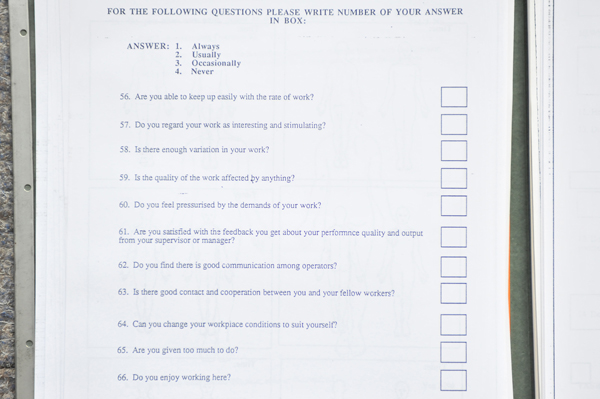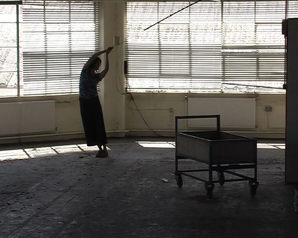 One of the documents found was theBody Part Discomfort Form, a questionnaire on working conditions and body positions in relation to experienced pain. In dialogue with the local dancer and choreographer Clare Reynolds, and by using the forms' questions as an instigator, movements are acted out and filmed with a video camera to explore different spaces on site. The exploration of space as substitute for former production in the factory is carried out to discuss the body-space relationship and the connected human condition.